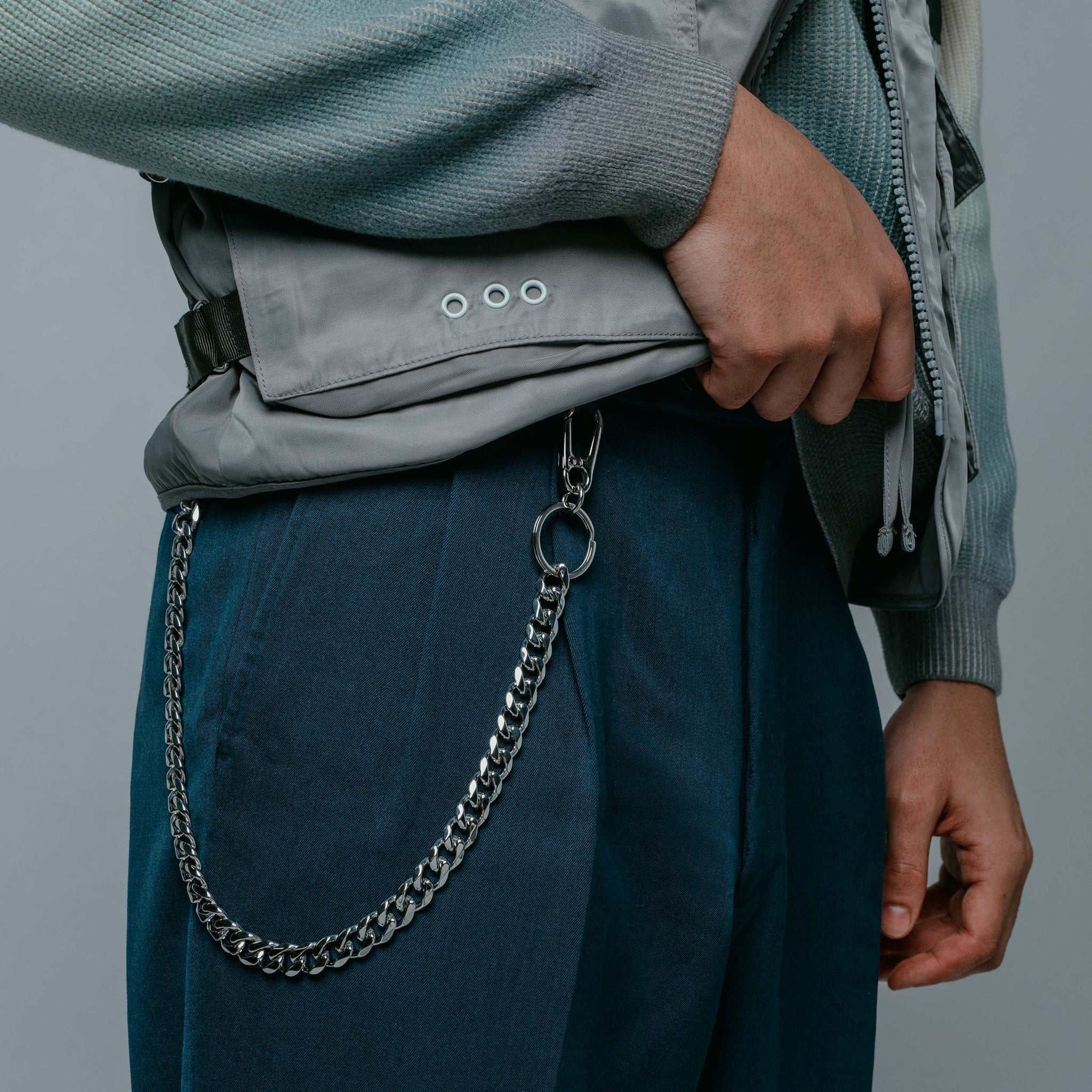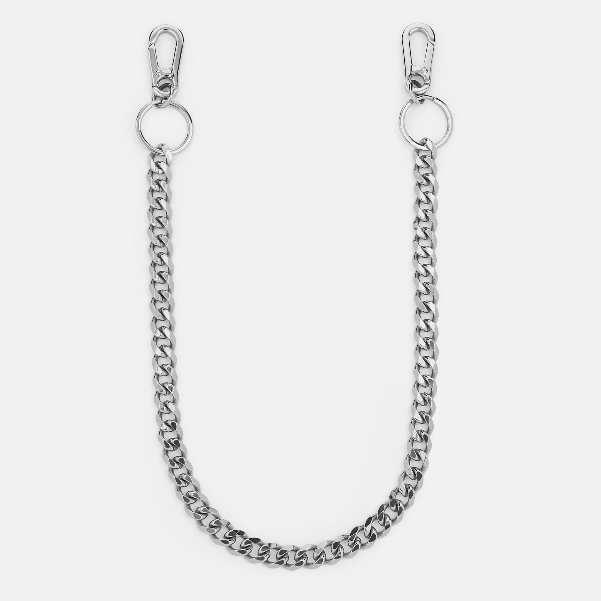 This wallet chain is finished with sleek custom carabiners on either end. Because the carabiners are attached using steel split-rings, one end can easily be removed to turn this into a heavy neck chain. Try attaching it to different belt loops to adjust the length.