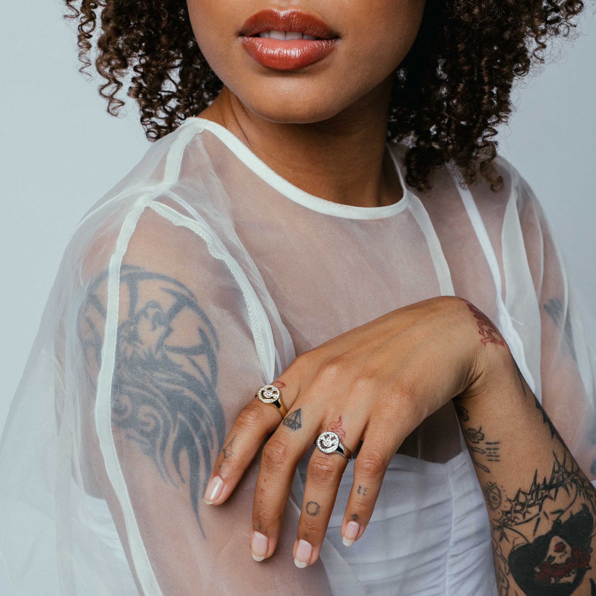 The Beam features a laser-cut smiley face with glass crystal inlays.