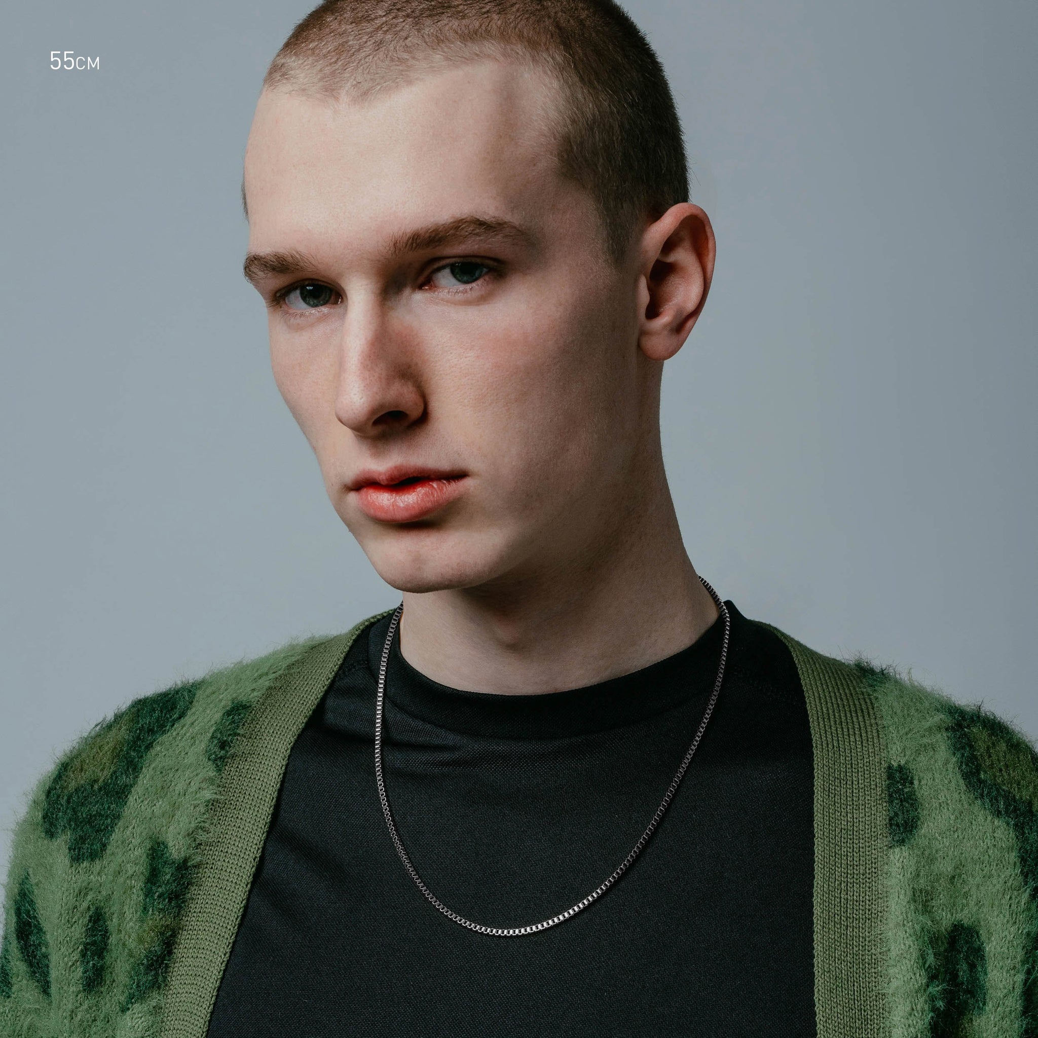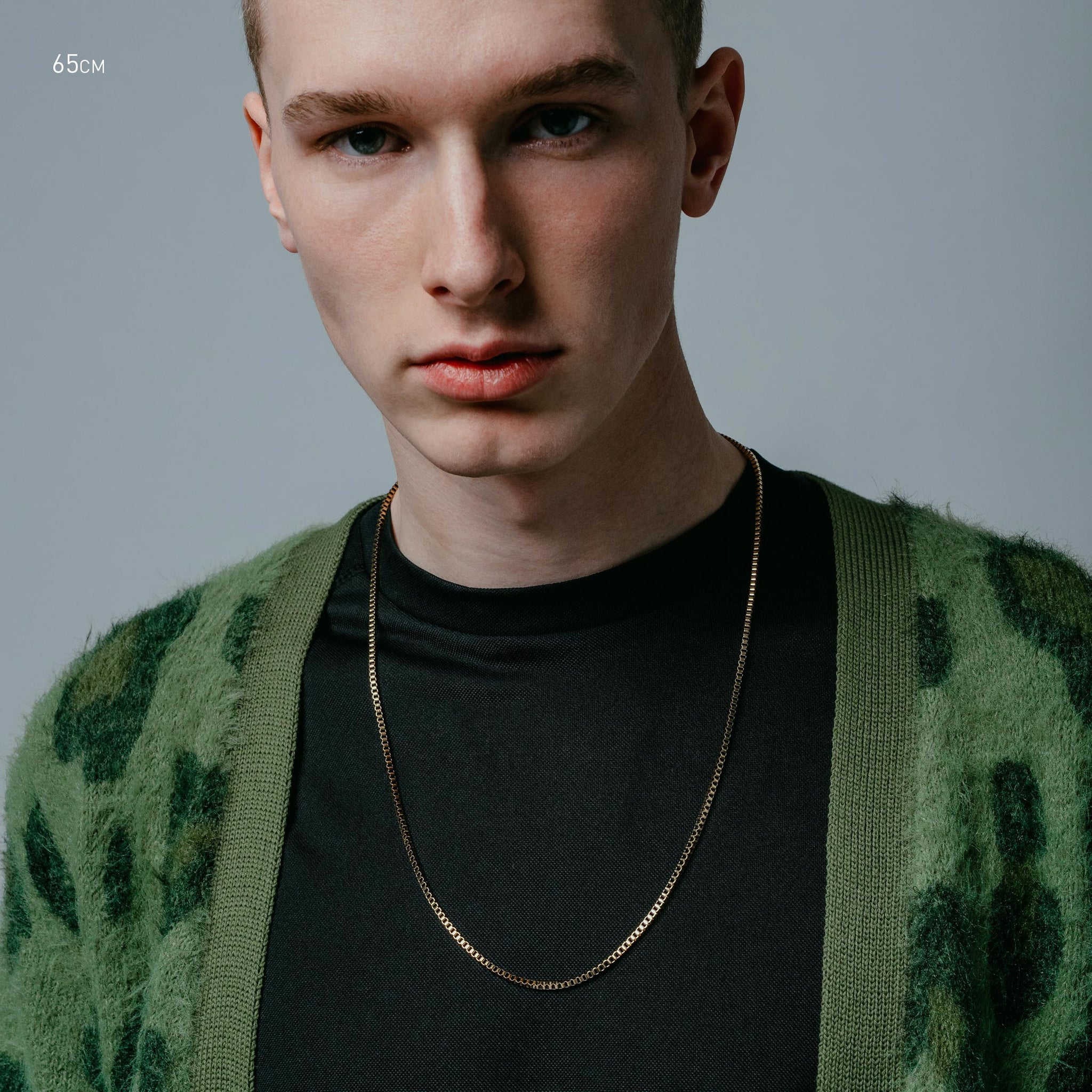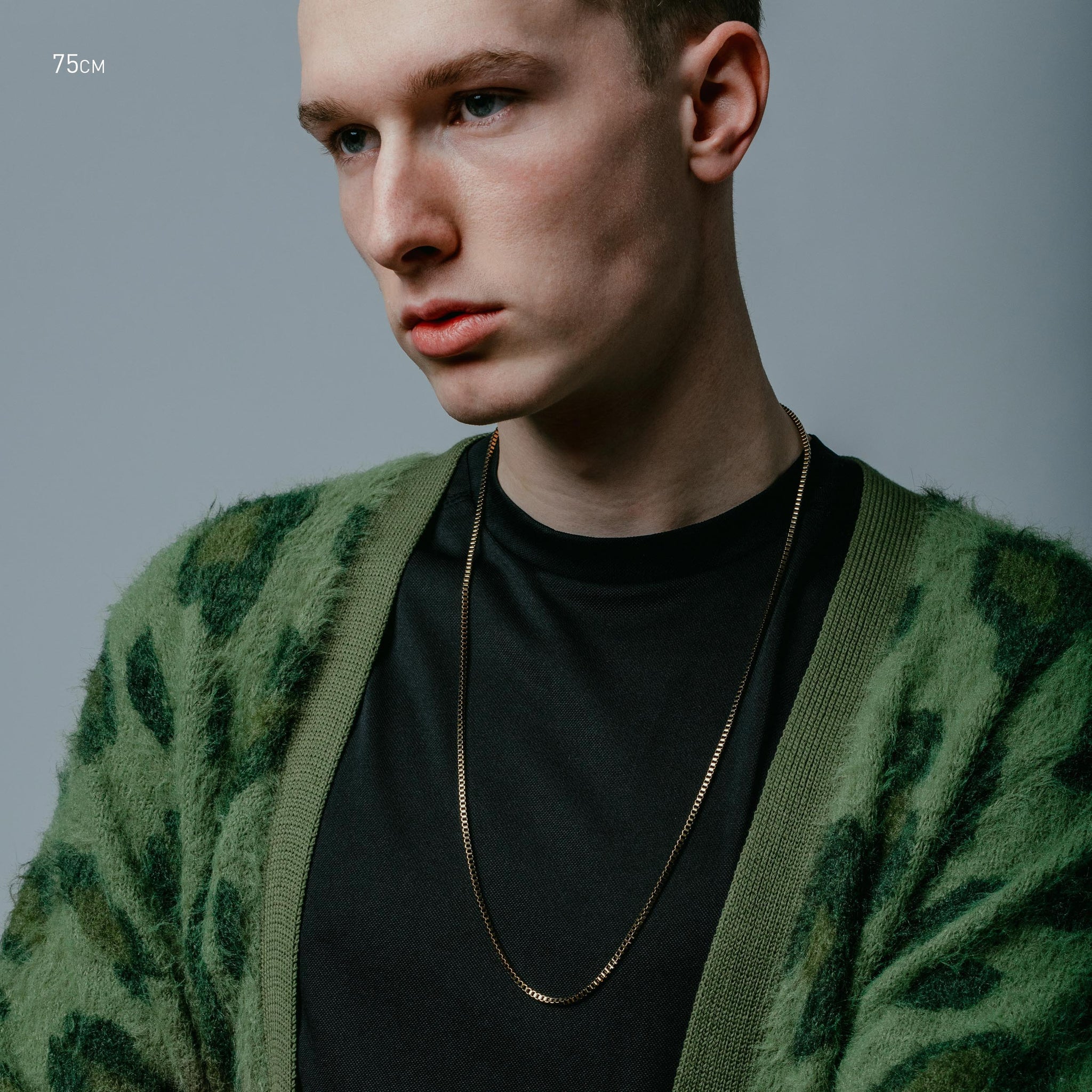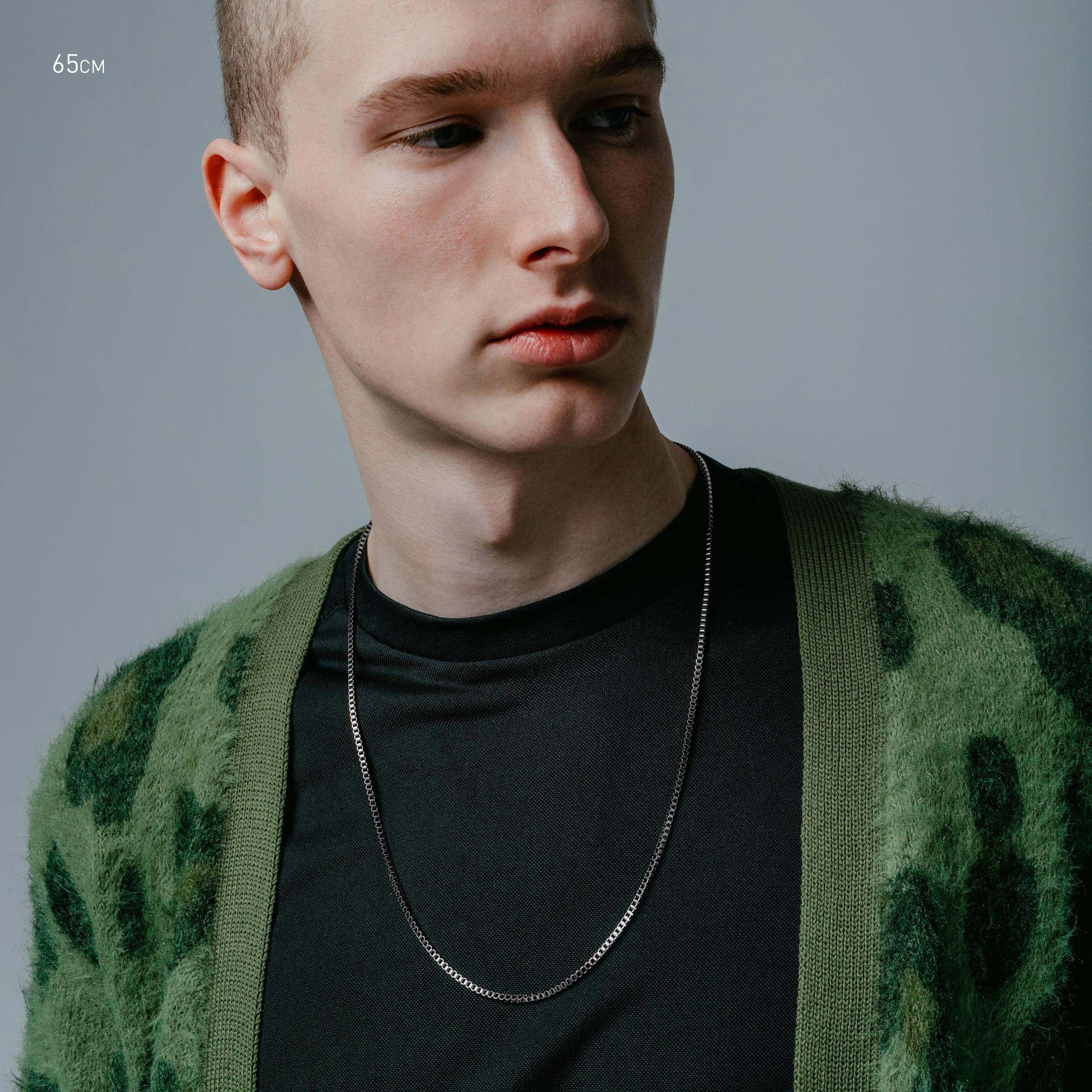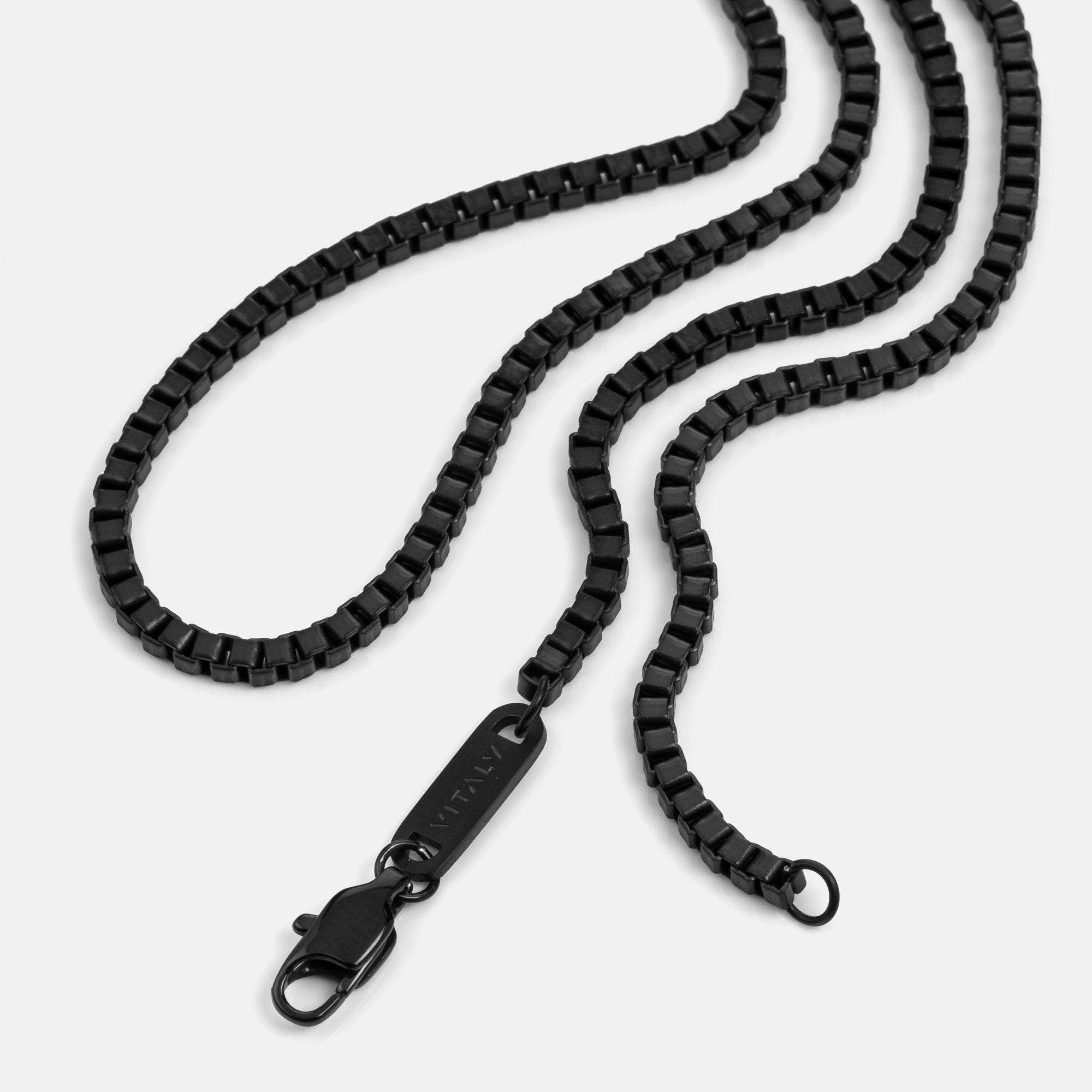 Single 55cm, 65cm or 75cm length square box chain. 2.4mm thick. Designed for layering.