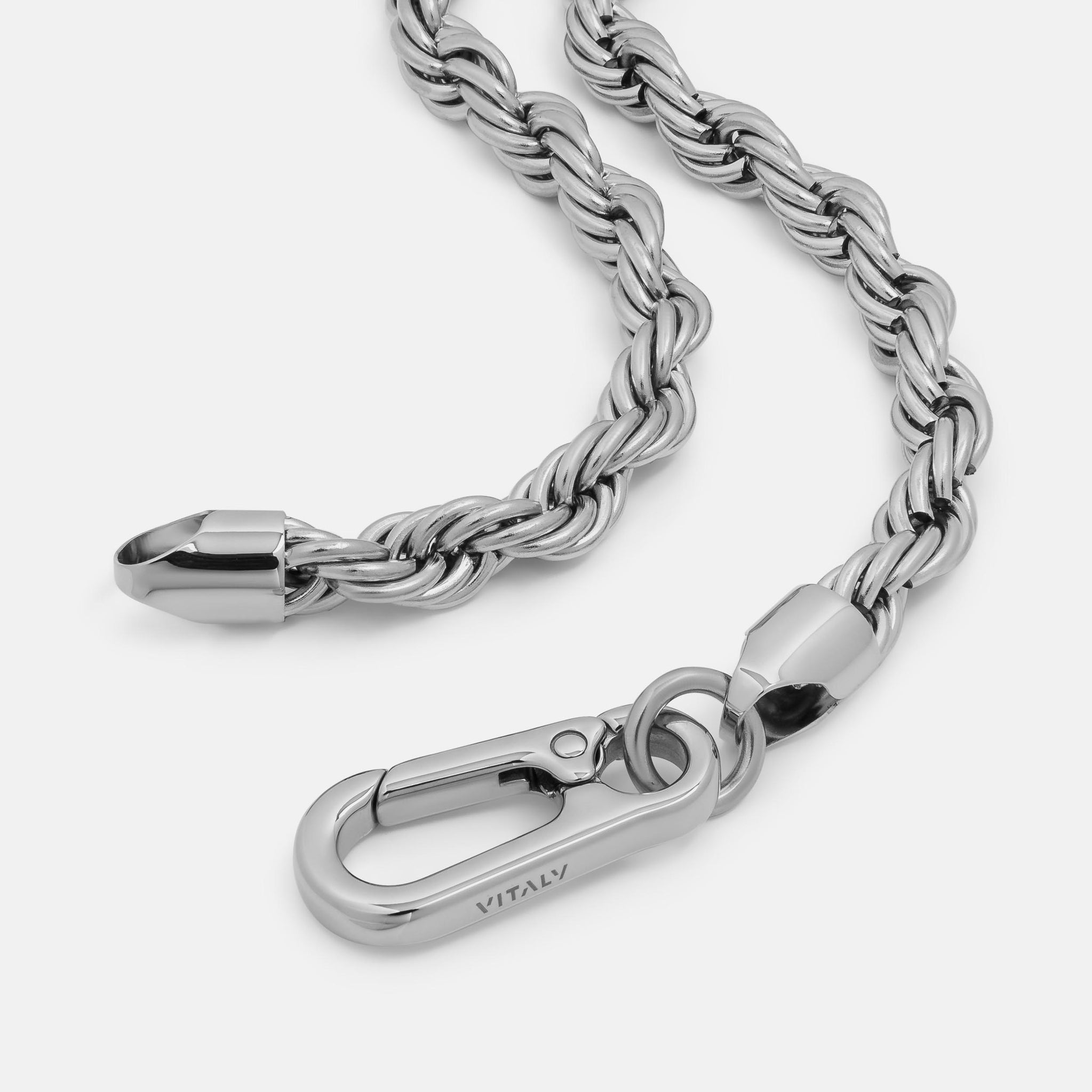Inspired by the oversized rope chains popularized by early hip-hop stars, the Braid is a contemporary rendition marked by a shortened length and an industrial carabiner closure.