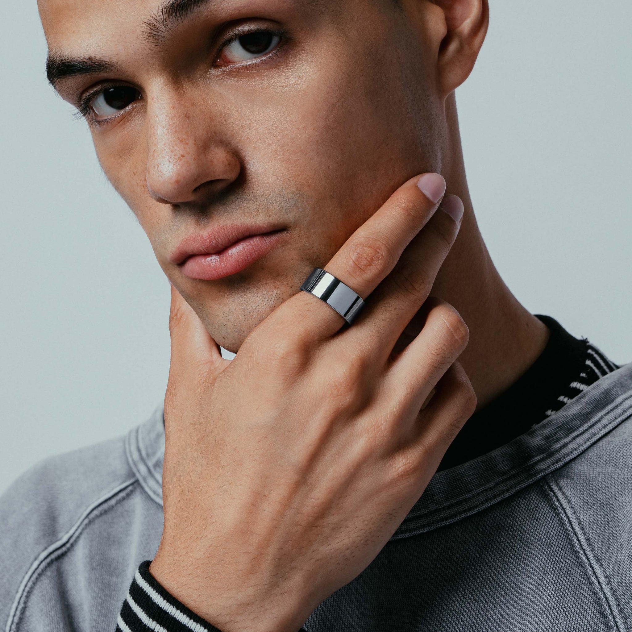 This oversized band ring is constructed from tungsten—the hardest natural metal on the planet. Tungsten is also more than twice as dense as steel, giving this ring an impressive heavy-weight quality.