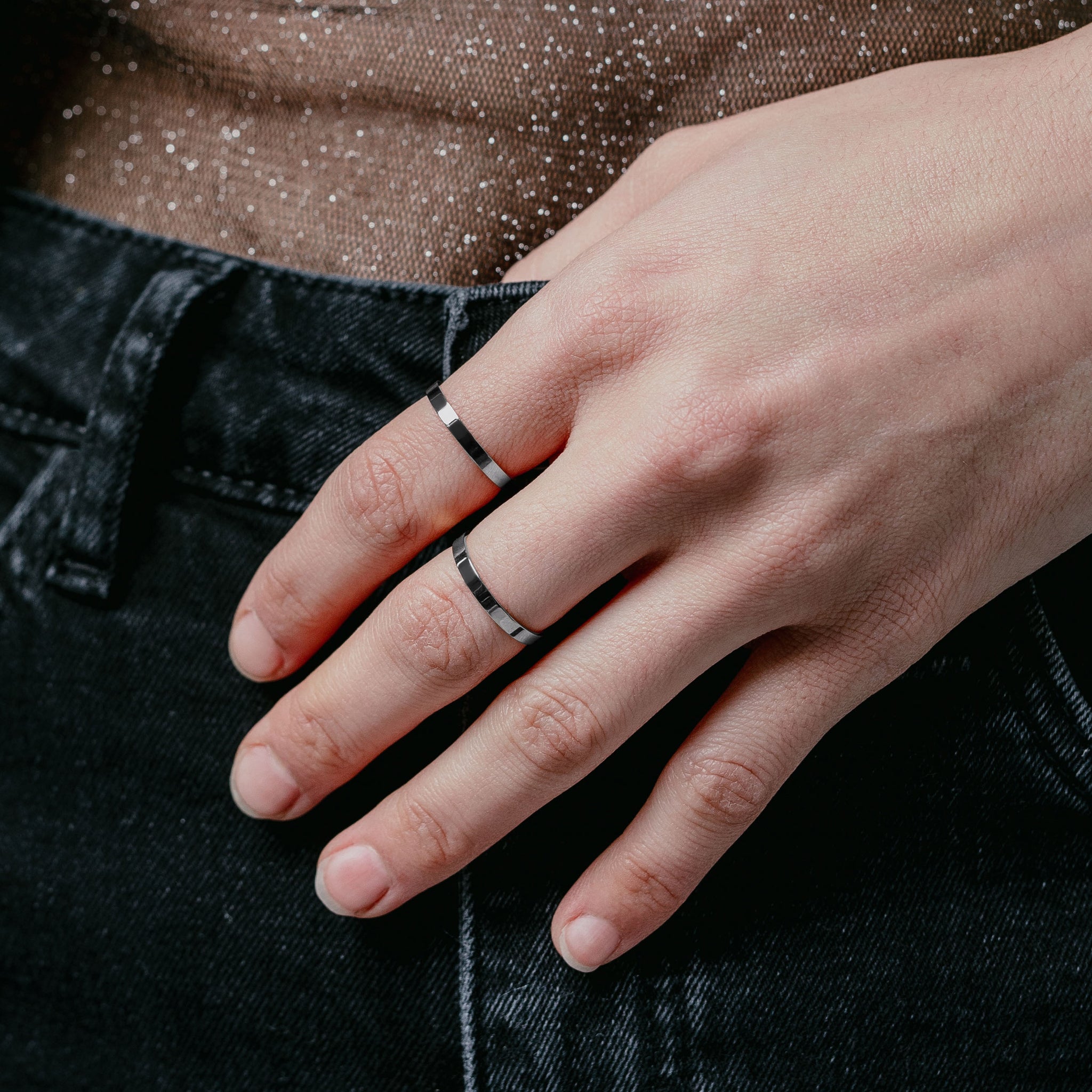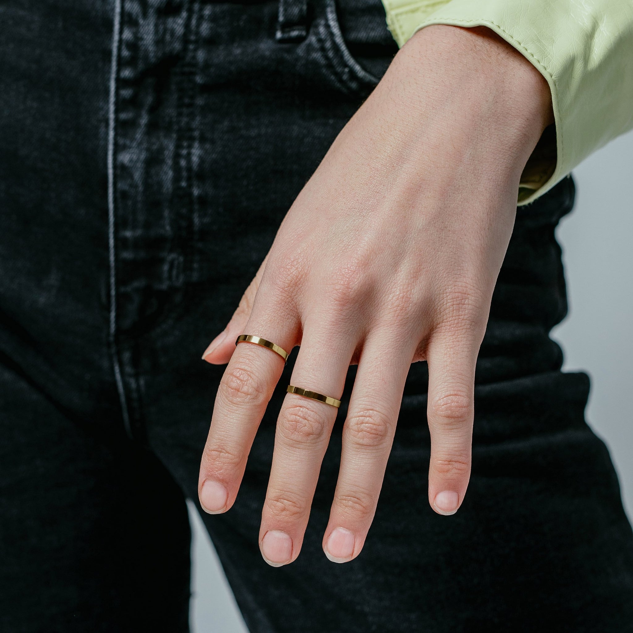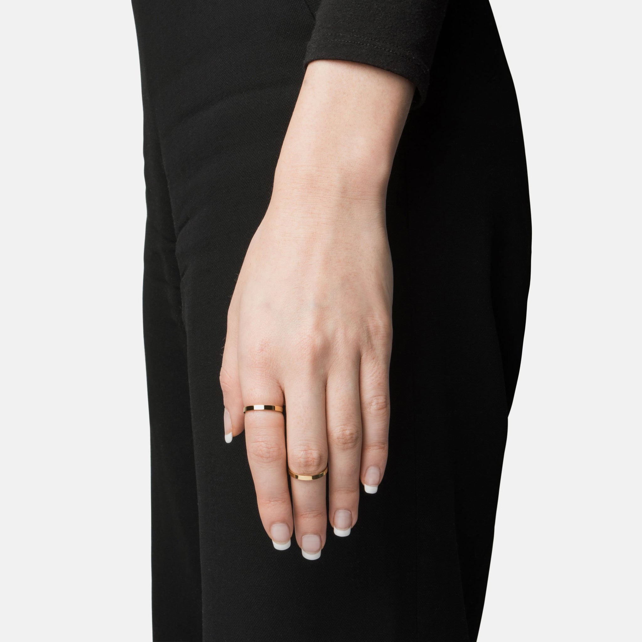 The Duet features two slim, versatile rings with beveled interiors that can be stacked together or worn on different fingers.
