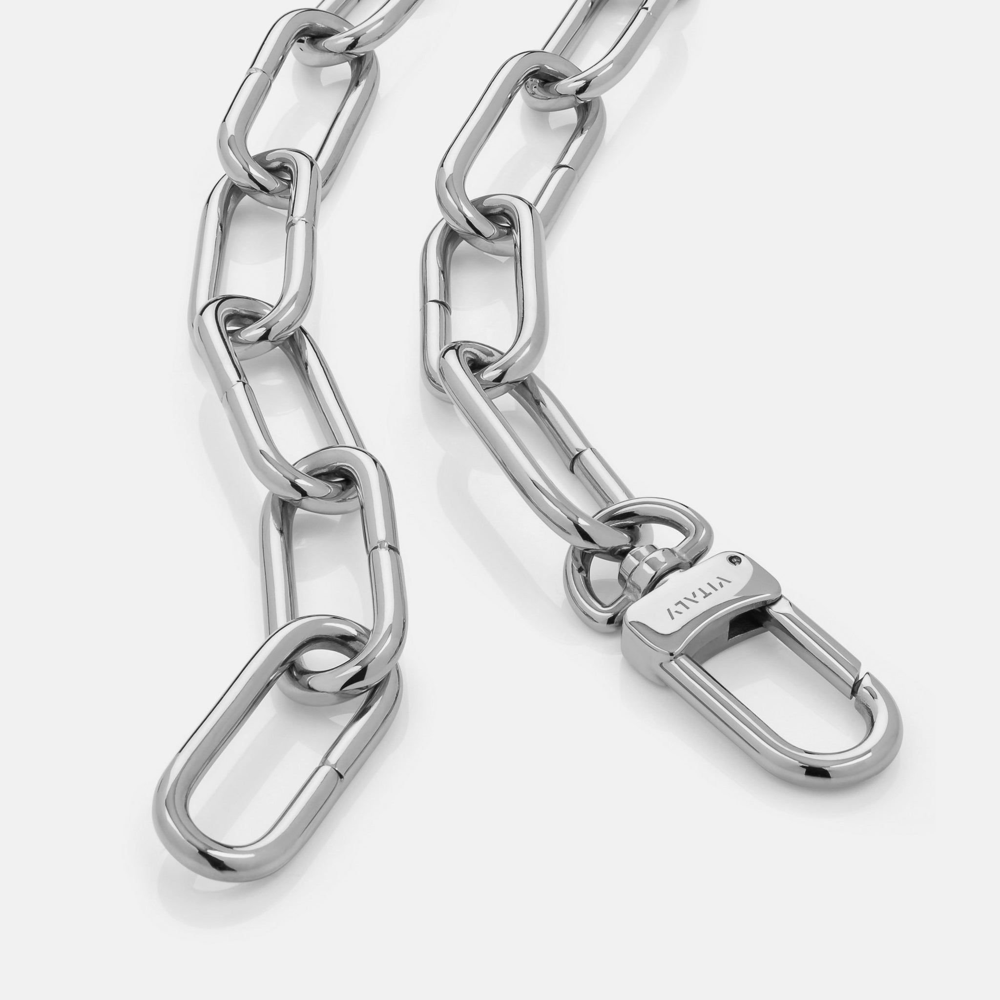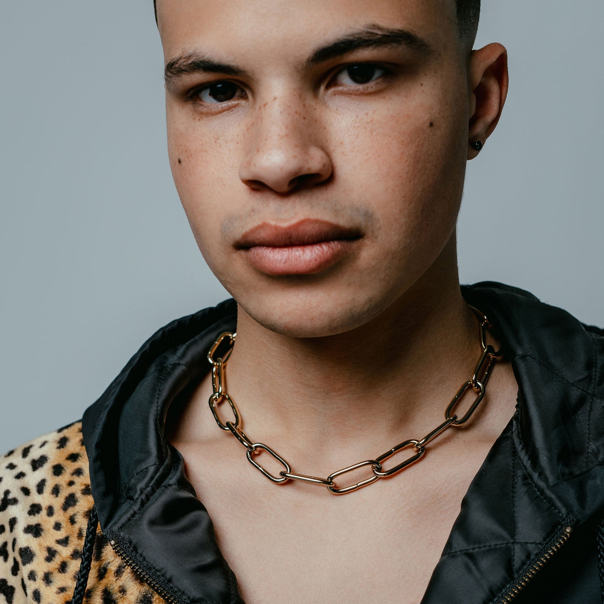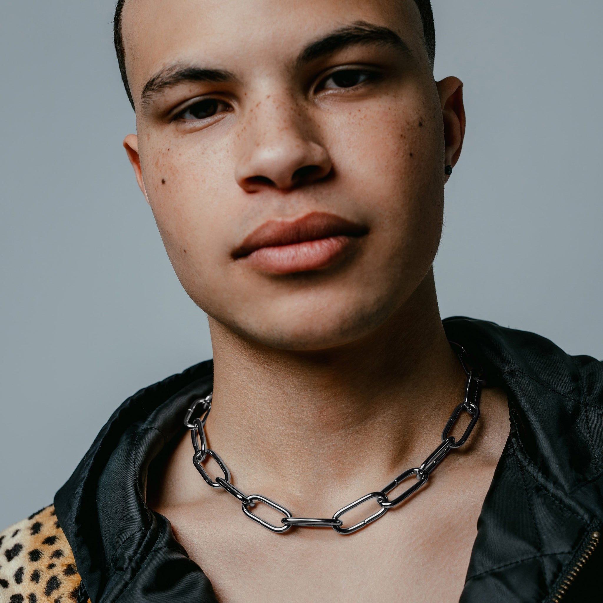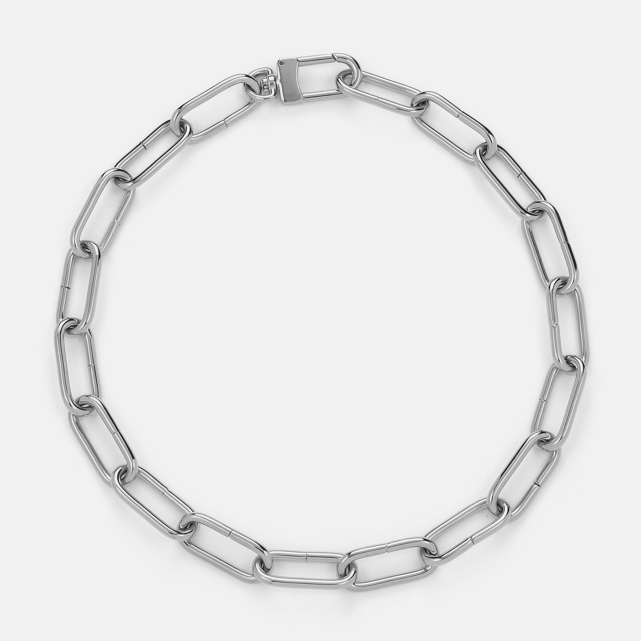 The Fixer is a sleek chain-link choker designed to sit close to the collarbone. Finished with a seamless clasping mechanism and laser engraved logo.