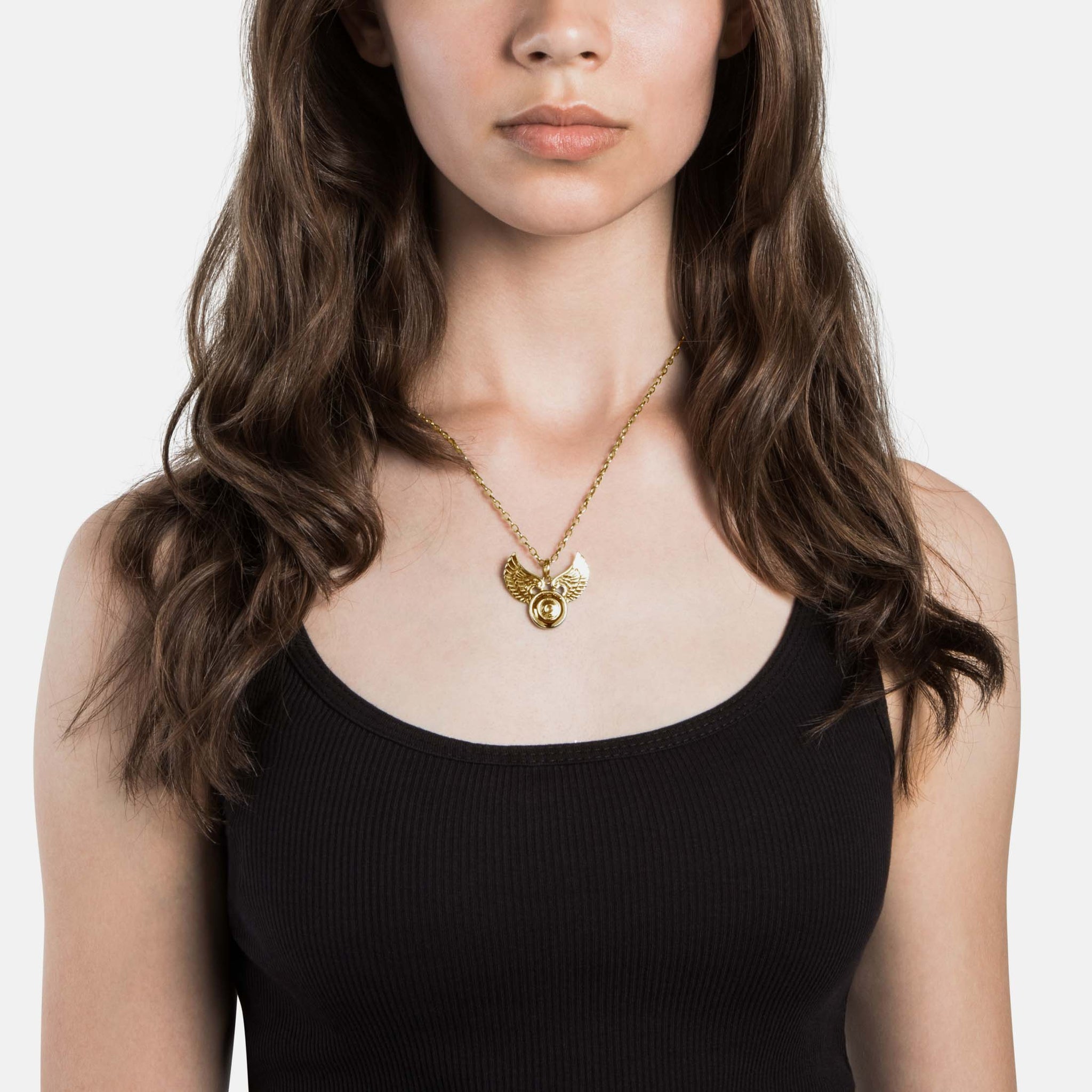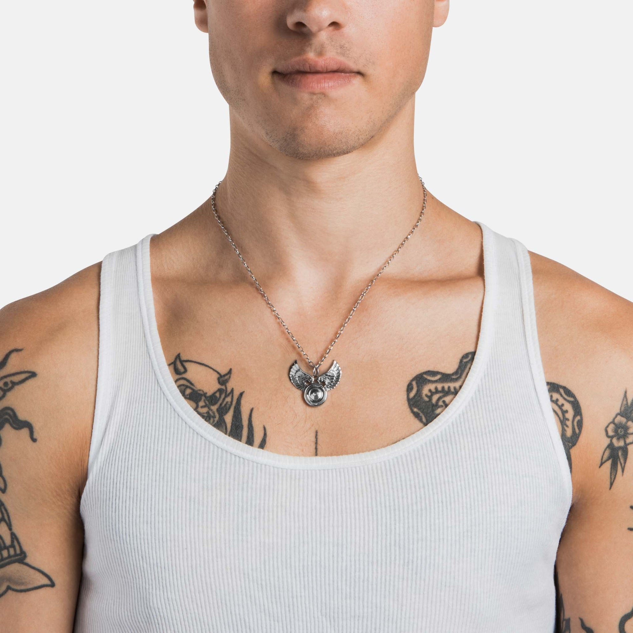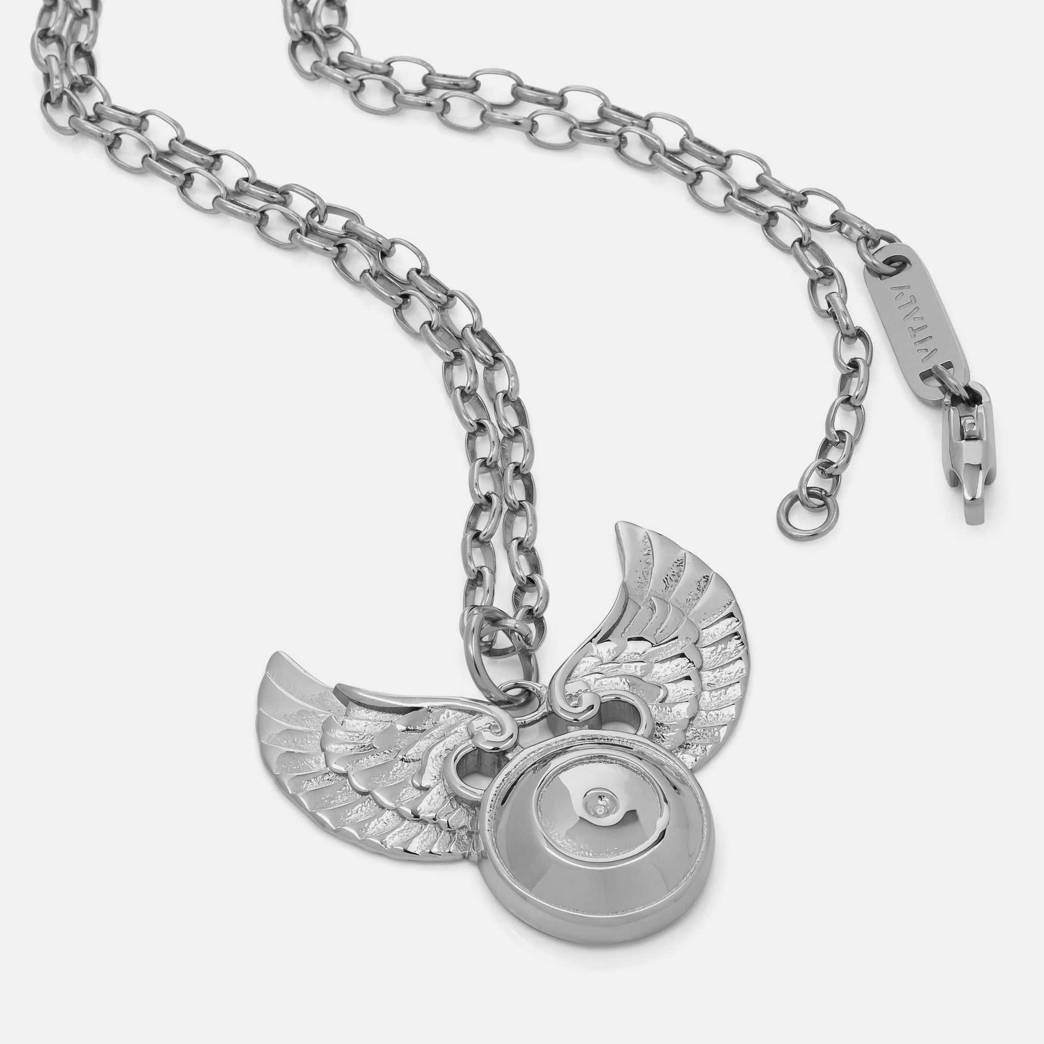Inspired by 90's skateboard graphics, the Flyball features a winged eyeball pendant.