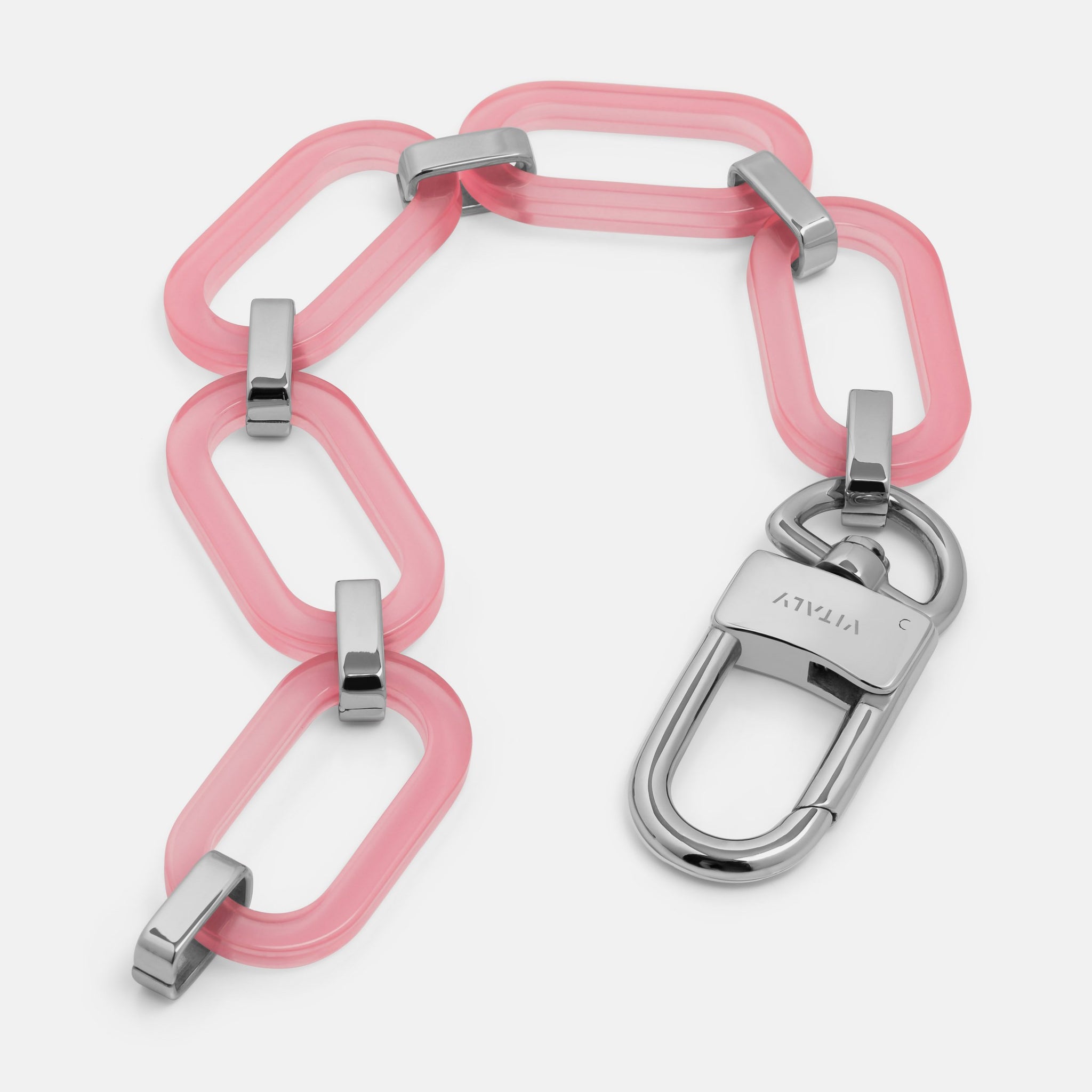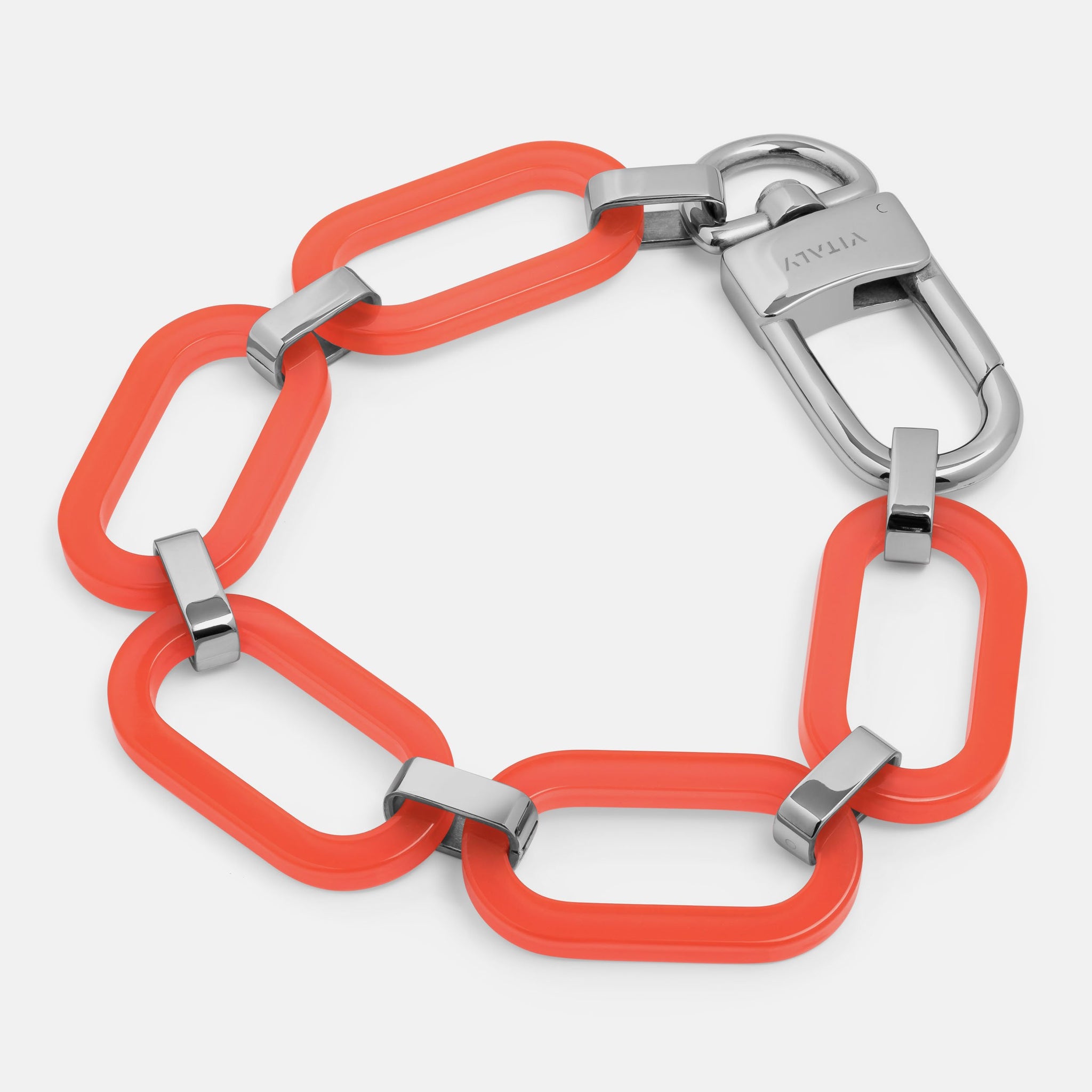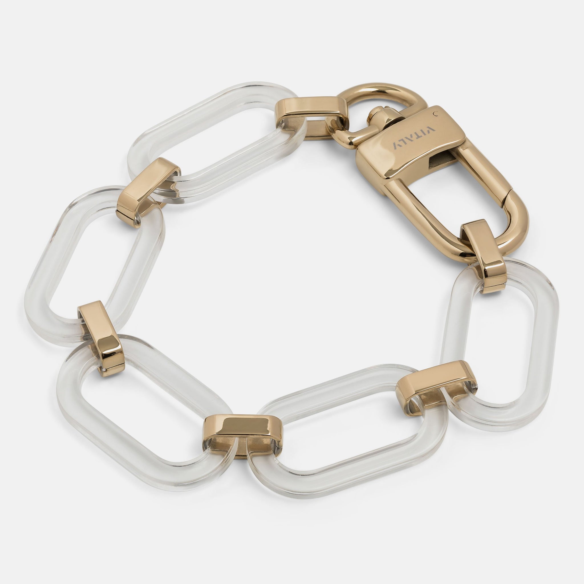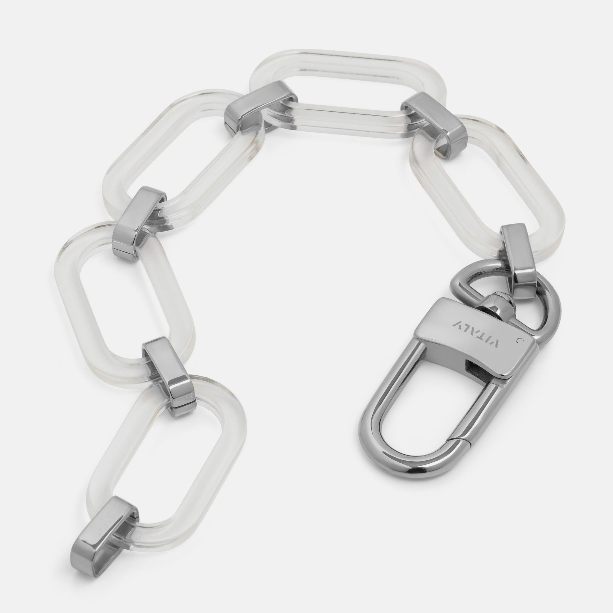 The Gamma features either clear or semi-translucent coloured acrylic links, joined by stainless steel brackets and an oversized, laser-engraved clasp.