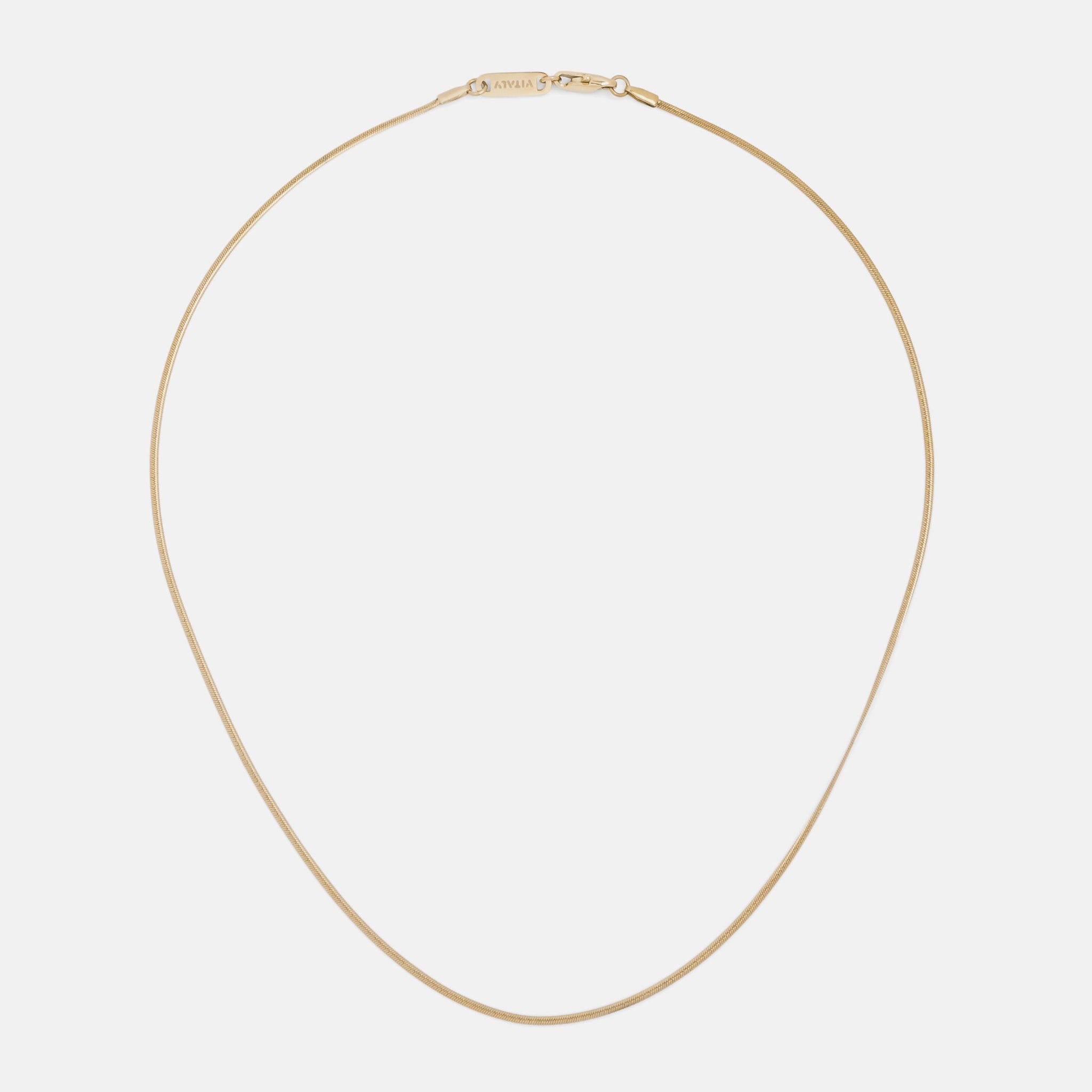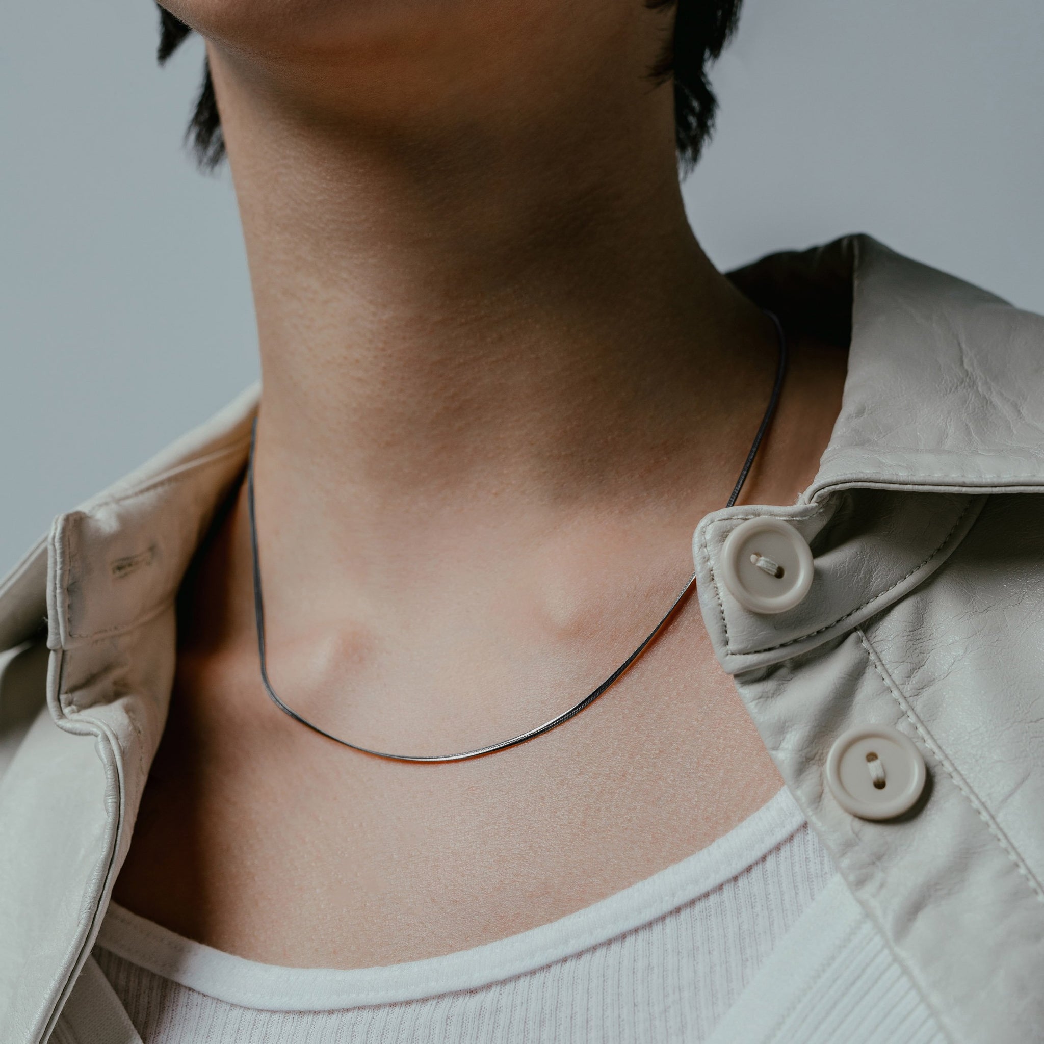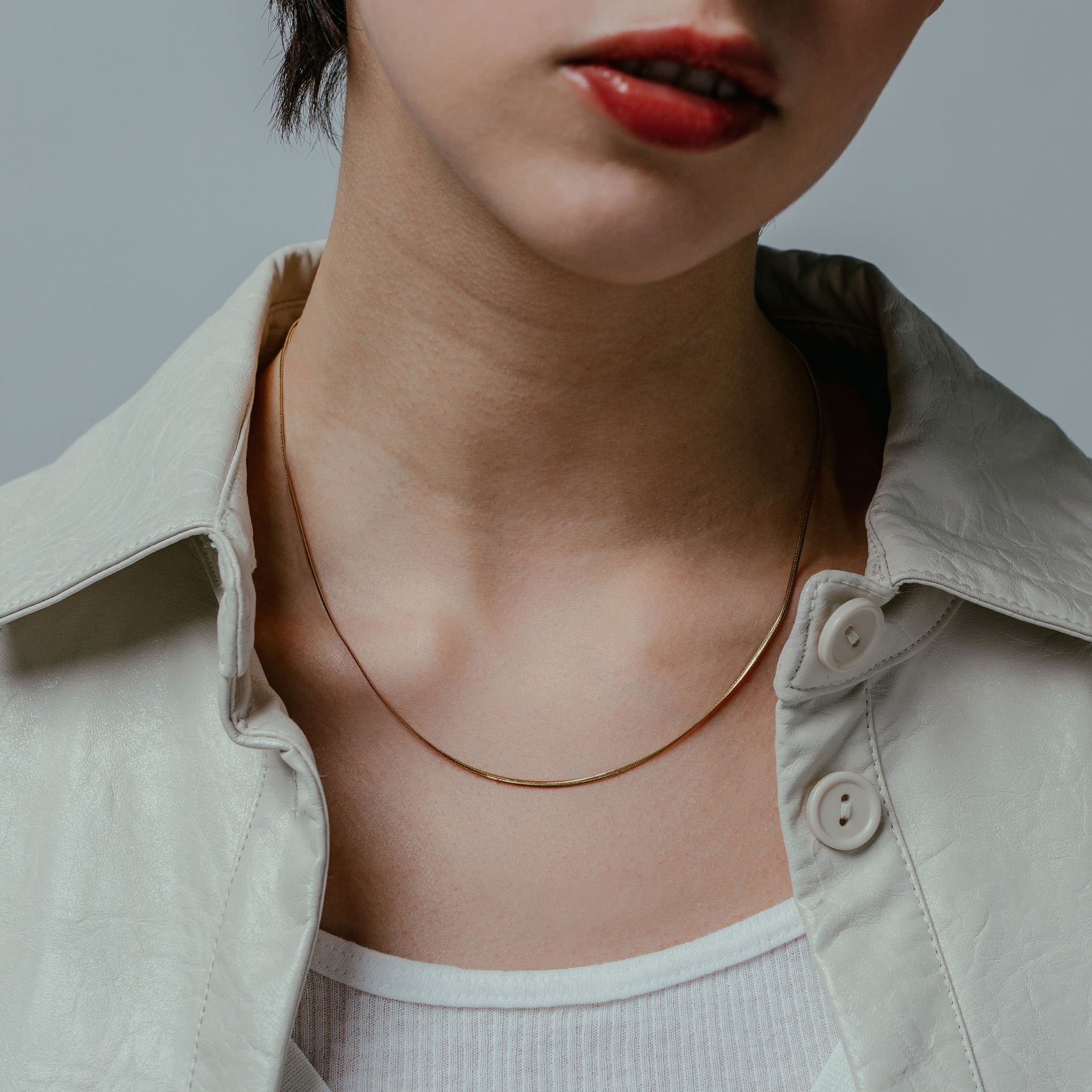 This slender snake chain features a custom logo tag and is versatile enough for everyday wear.