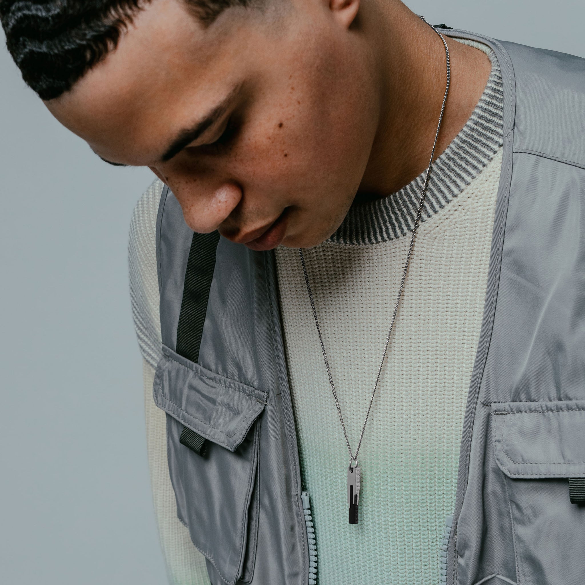 Materials: Stainless Steel. Comes on a 65cm (26") curb chain.