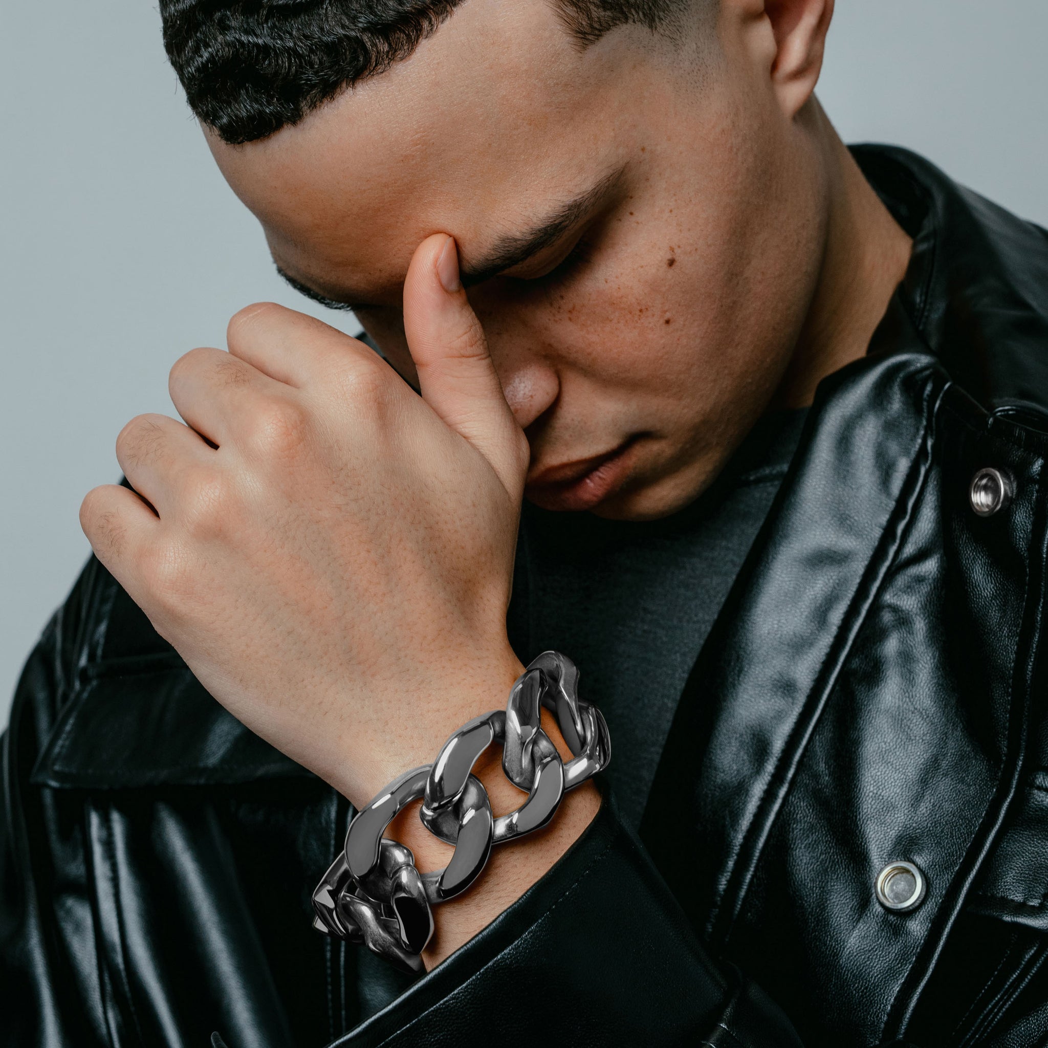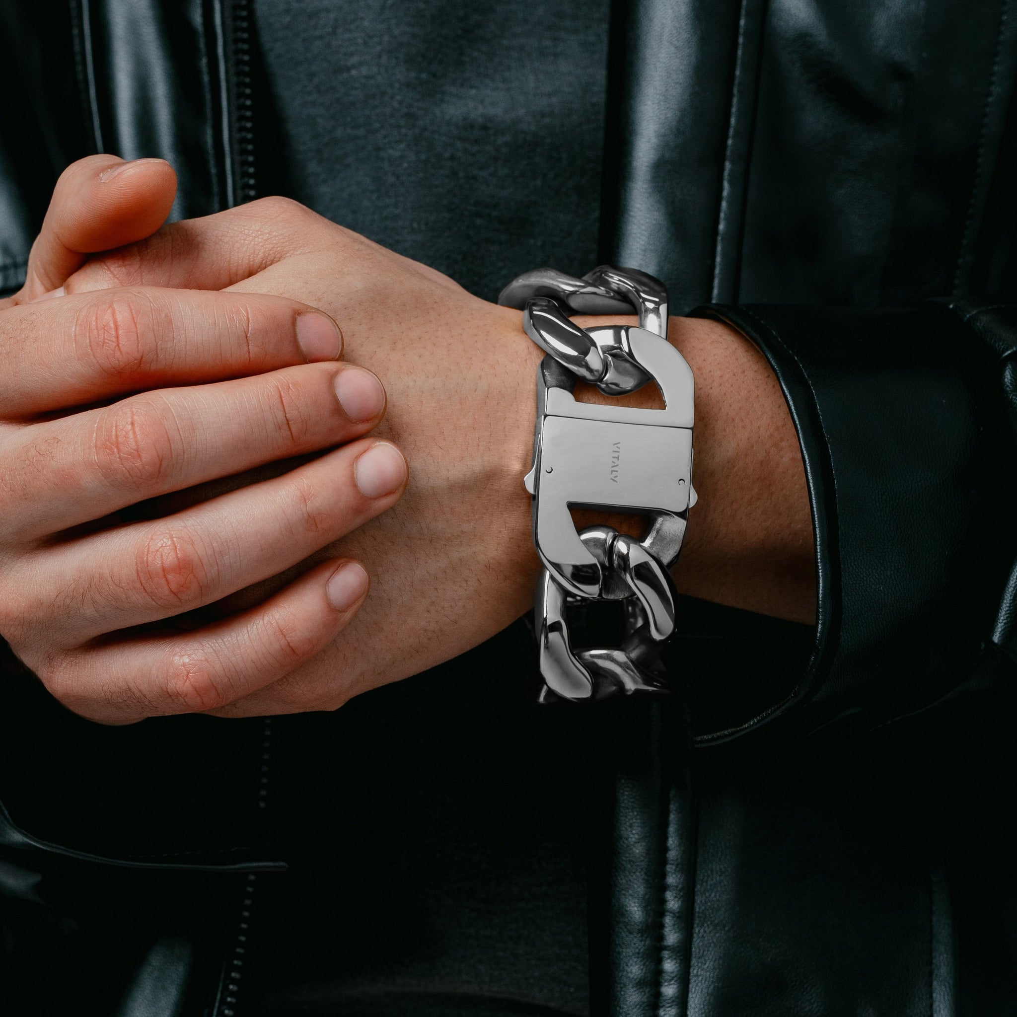 By far our largest bracelet at 1.5" wide, the Havoc clamps shut with a heavy-duty buckle clasp that can be worn facing up or down.