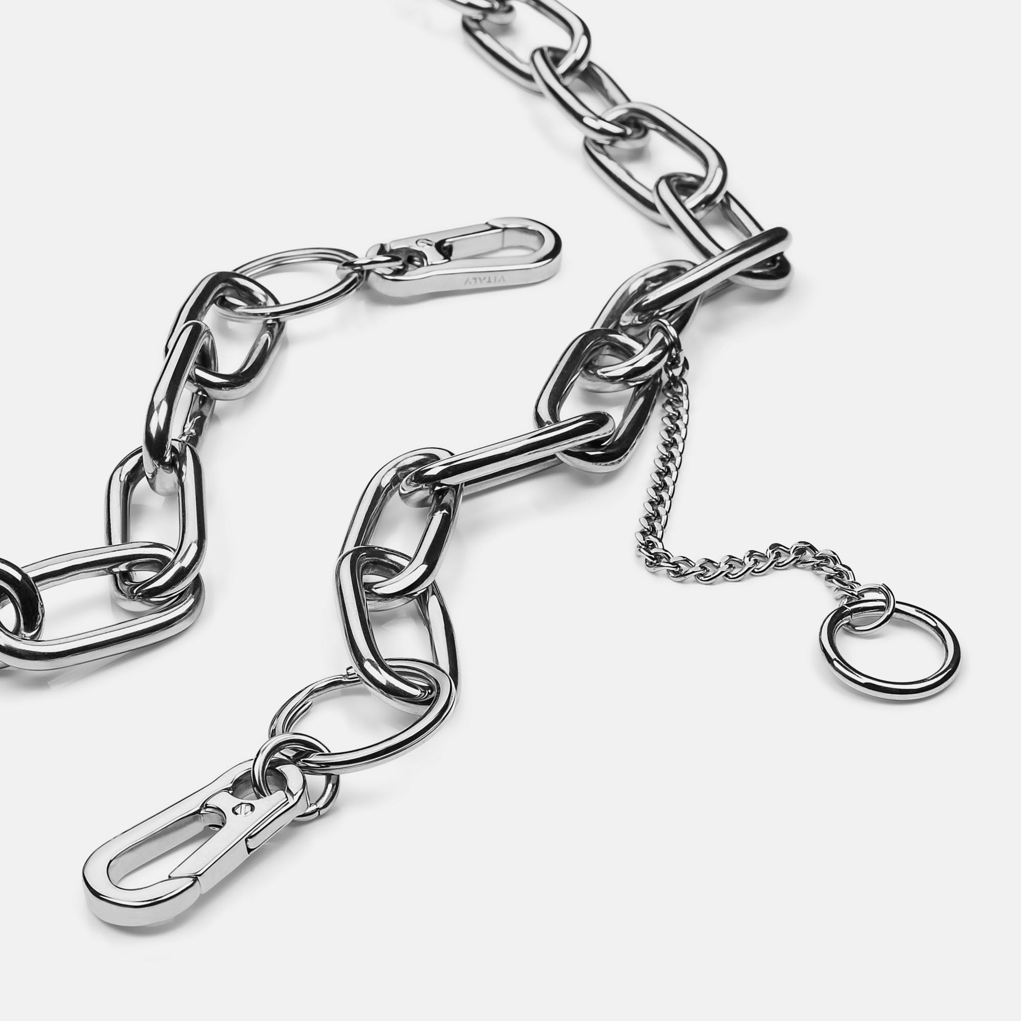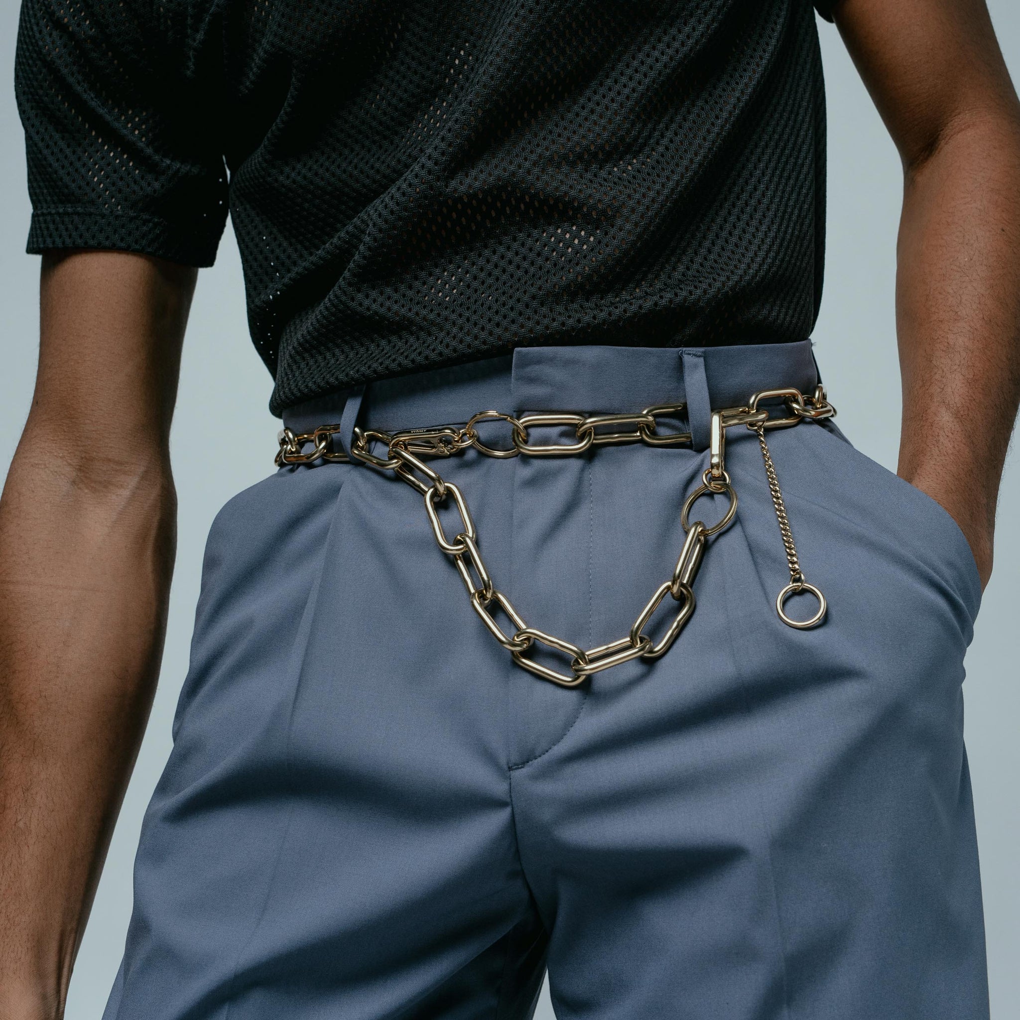 The Komponent is a heavy-duty chain belt designed for maximum impact. With custom carabiners on each end, the belt can be worn with the loose end dangling or clipped up. A slender secondary chain adds an element of contrast, but can be easily removed for a more streamlined look. The adventurous can even try rocking the Komponent as a cross-body strap. But no matter how you wear it, you can be sure you’ll turn heads.