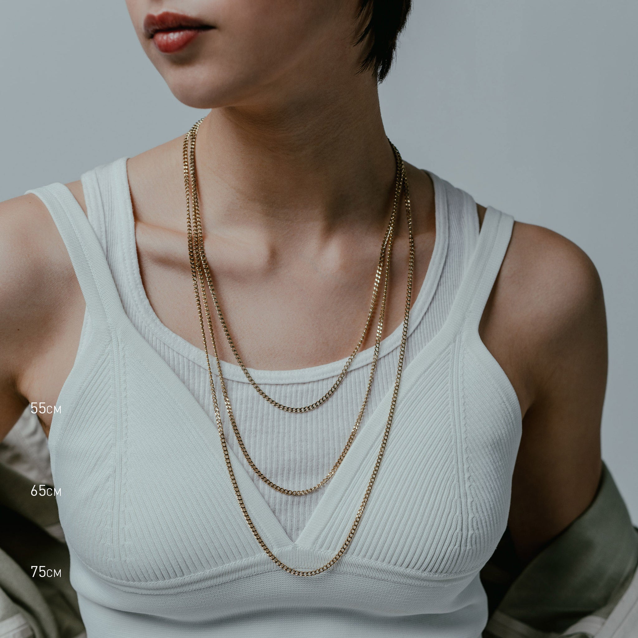 Single 55cm, 65cm or 75cm length Miami chain. 3mm thick. Designed for layering.
