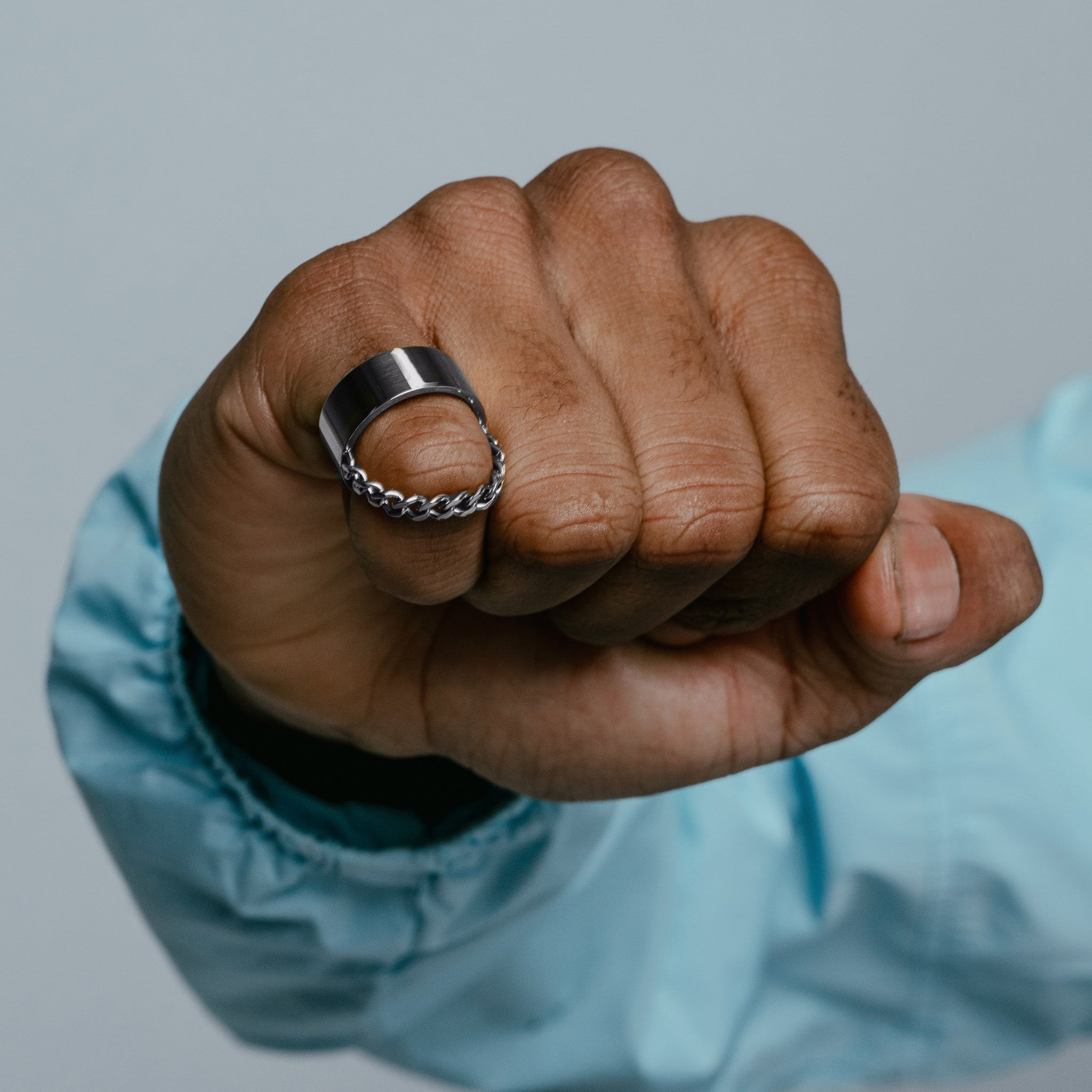 The Resist features a dangling chain that has been soldered to a clean tube ring.