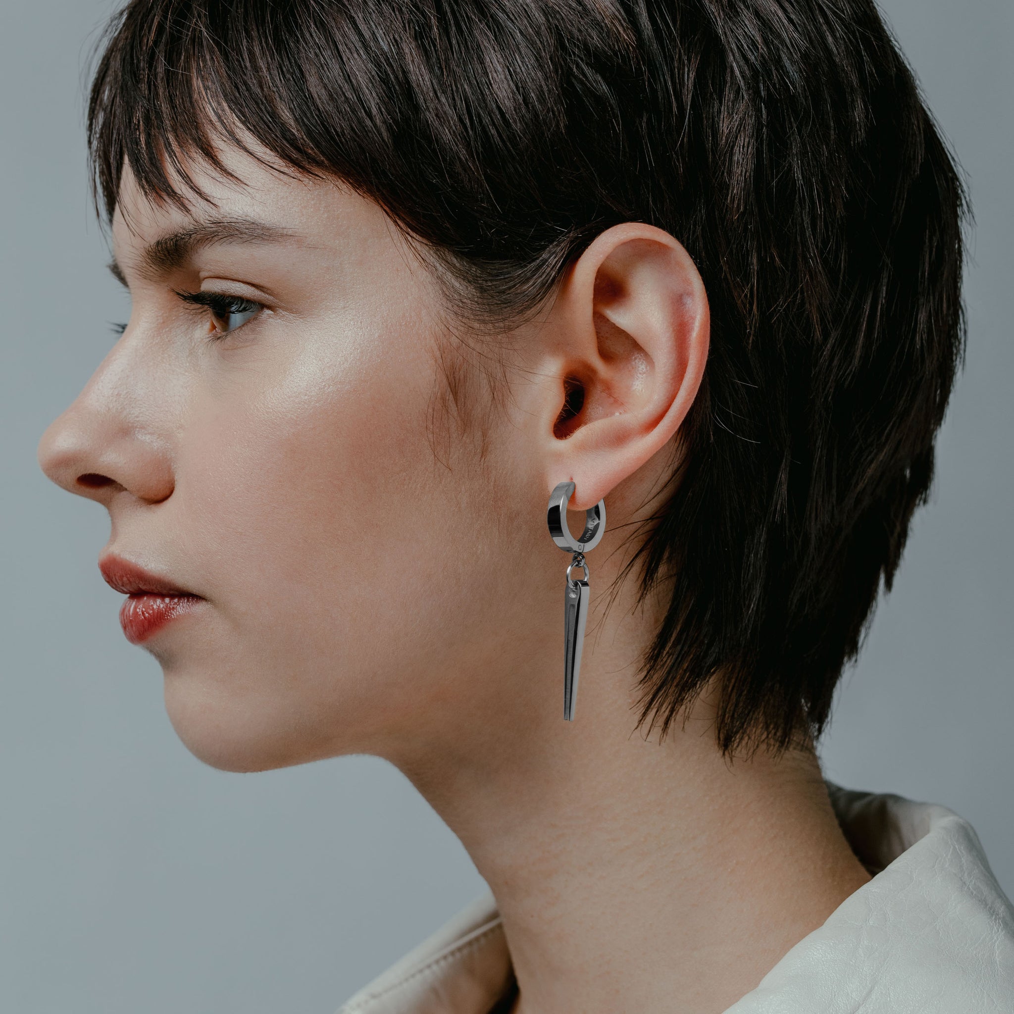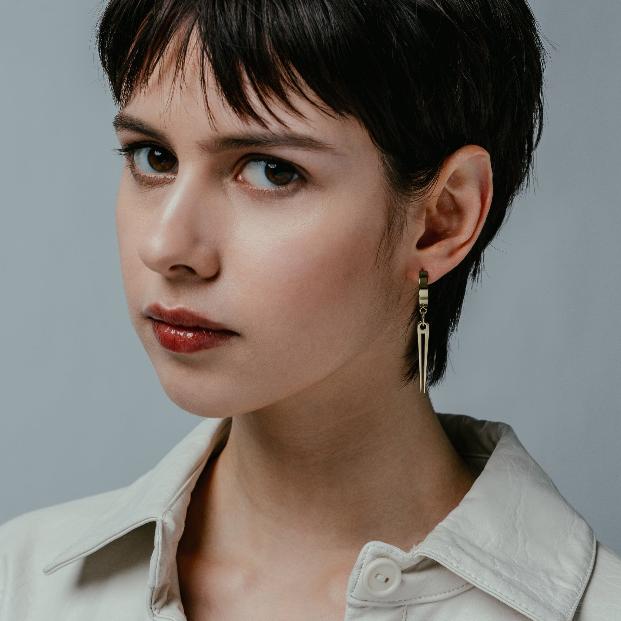 This single-earring design is inspired by the shape of a harmonic tuning prong.