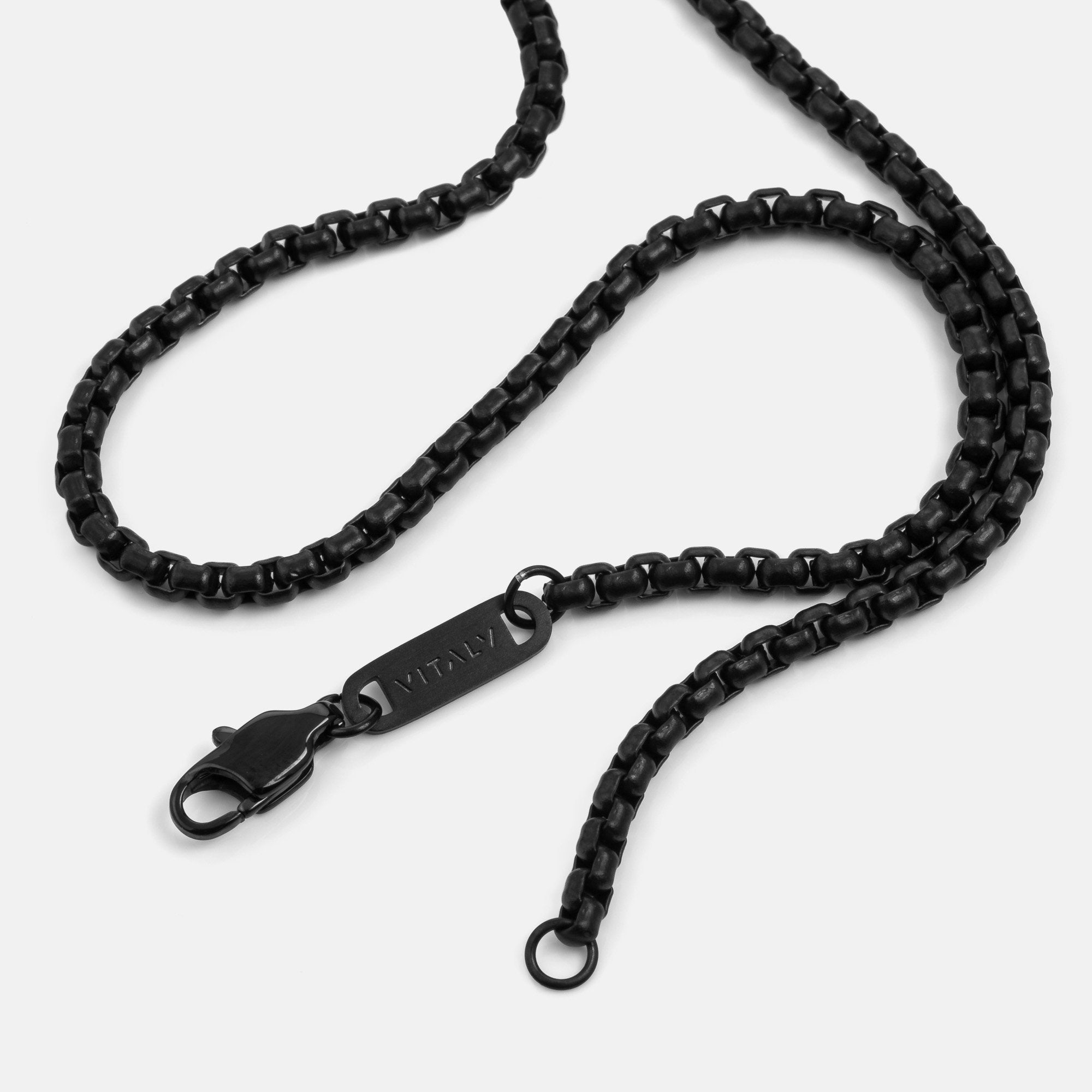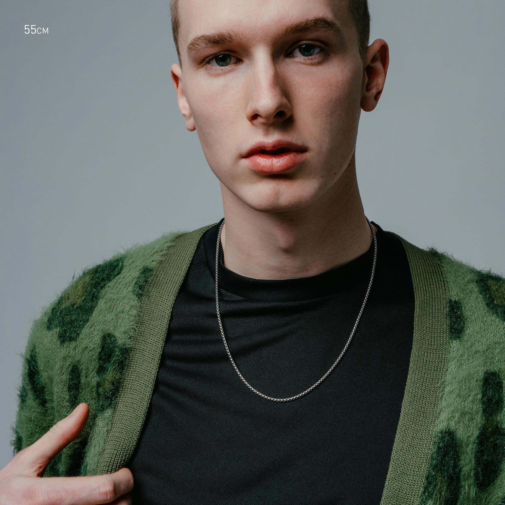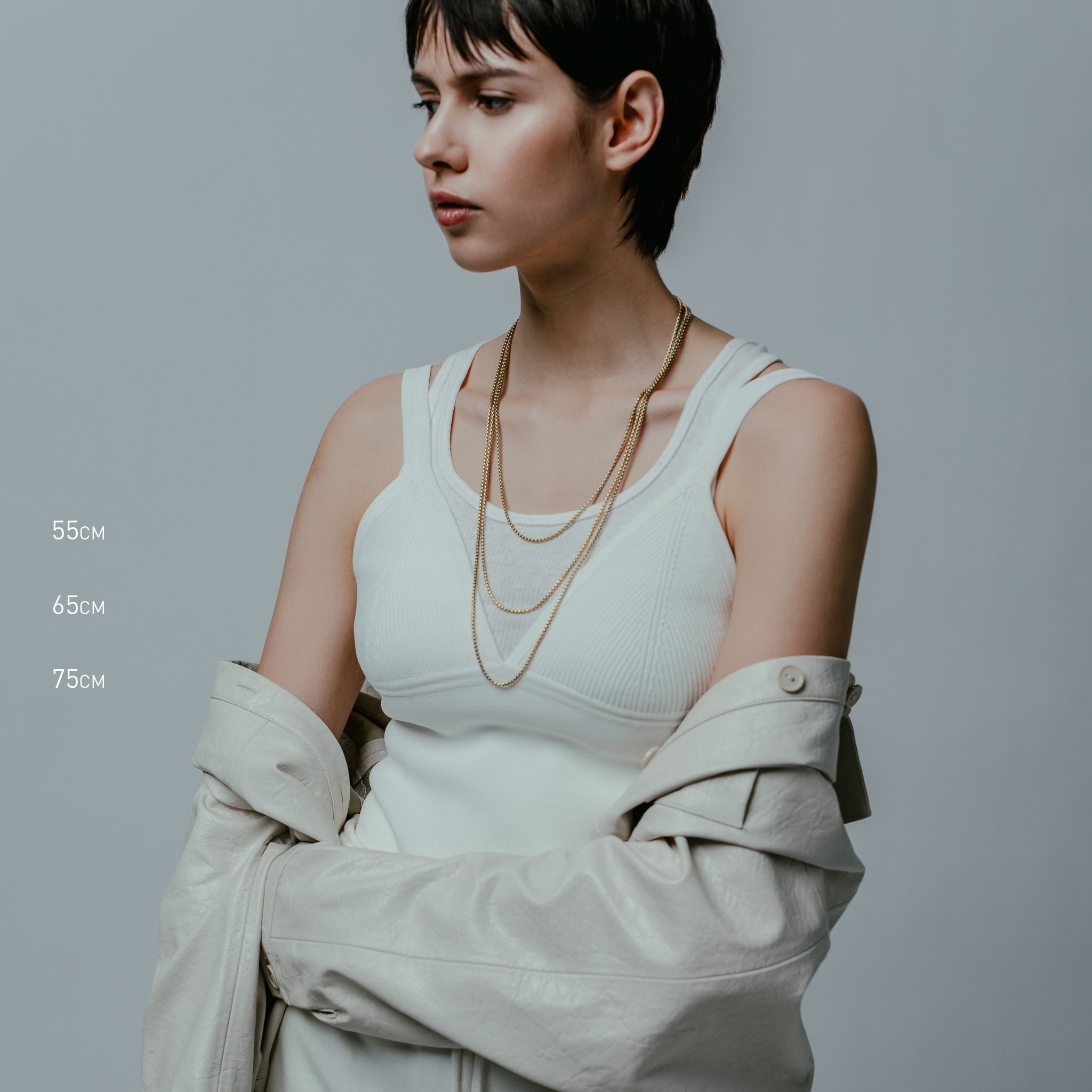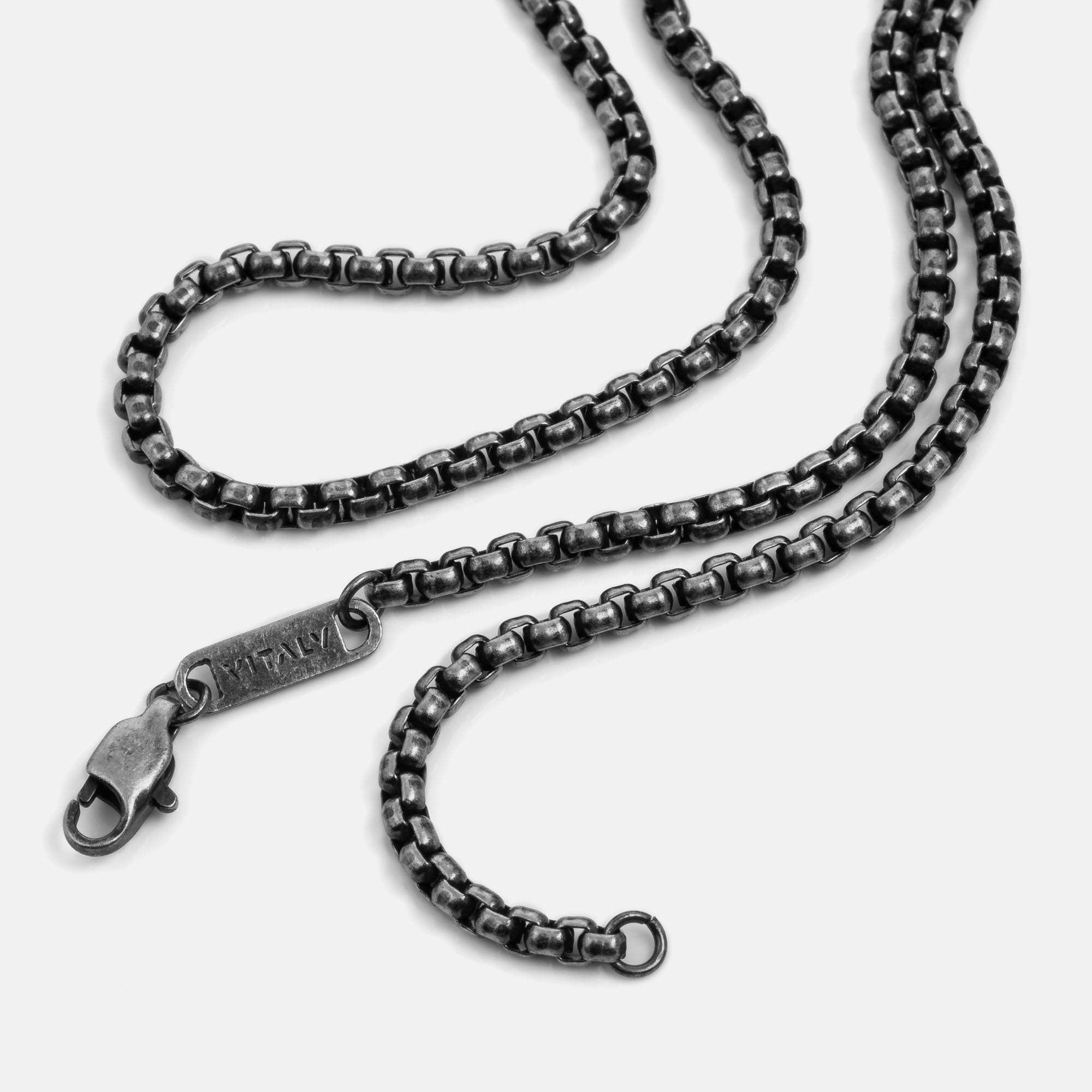Single 55cm, 65cm or 75cm length rounded box chain. 2.4mm thick. Designed for layering.