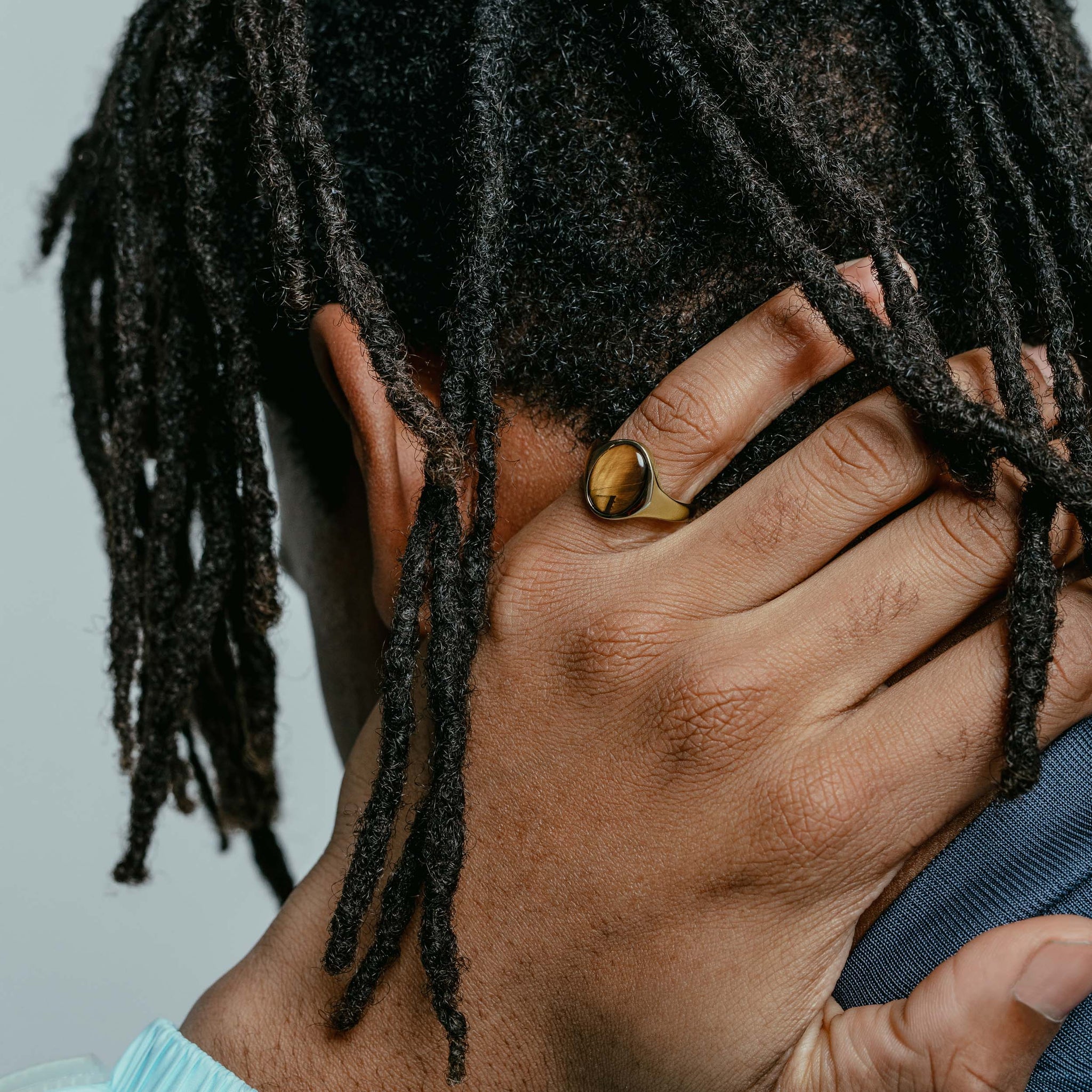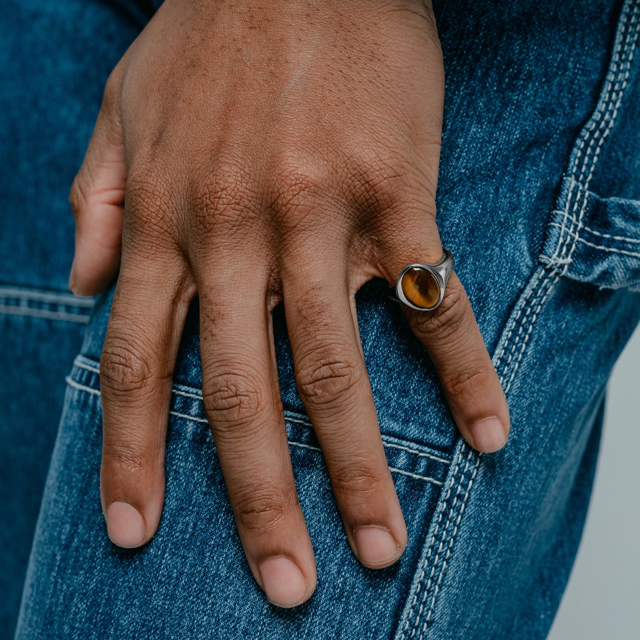 Inspired by opulent antique rings, the Silica features a domed Tiger's Eye stone housed in a rounded casing.