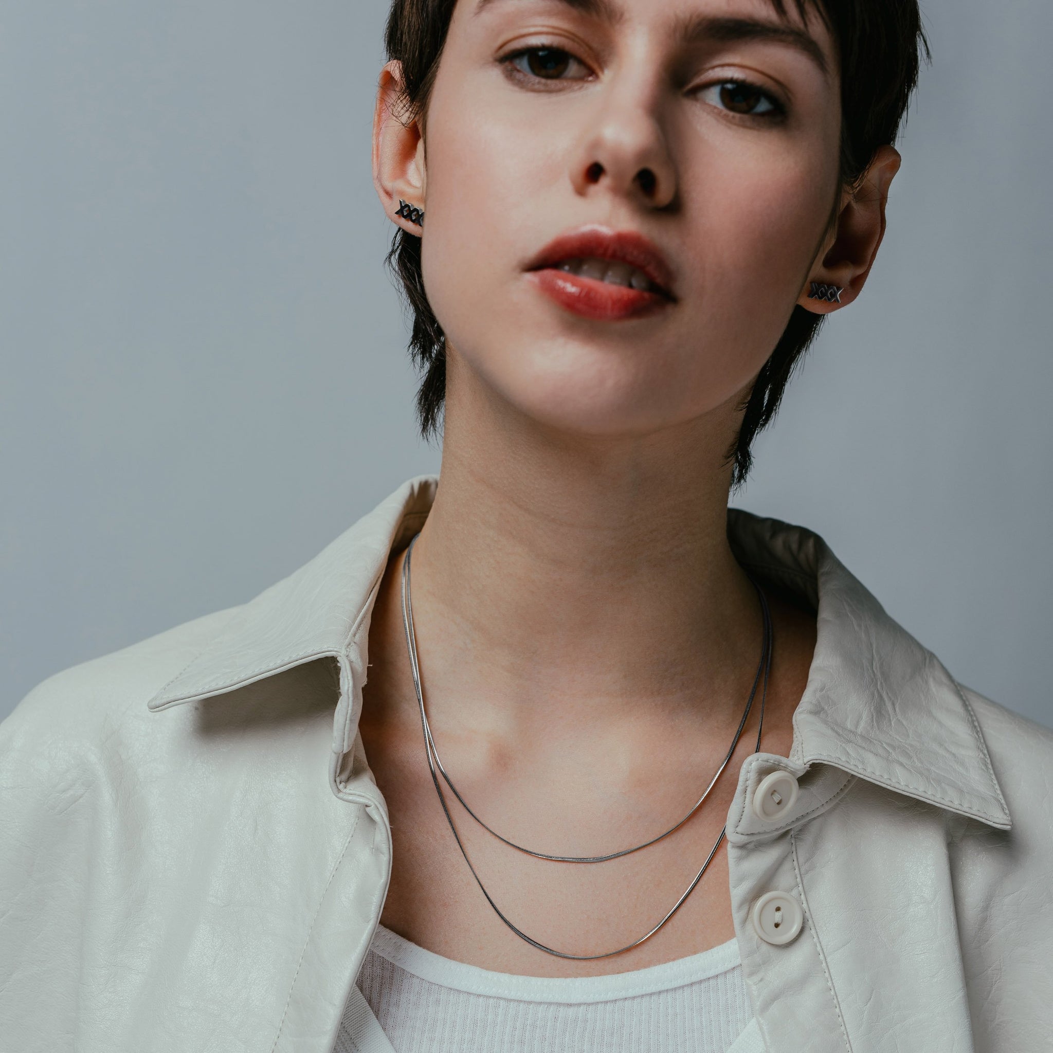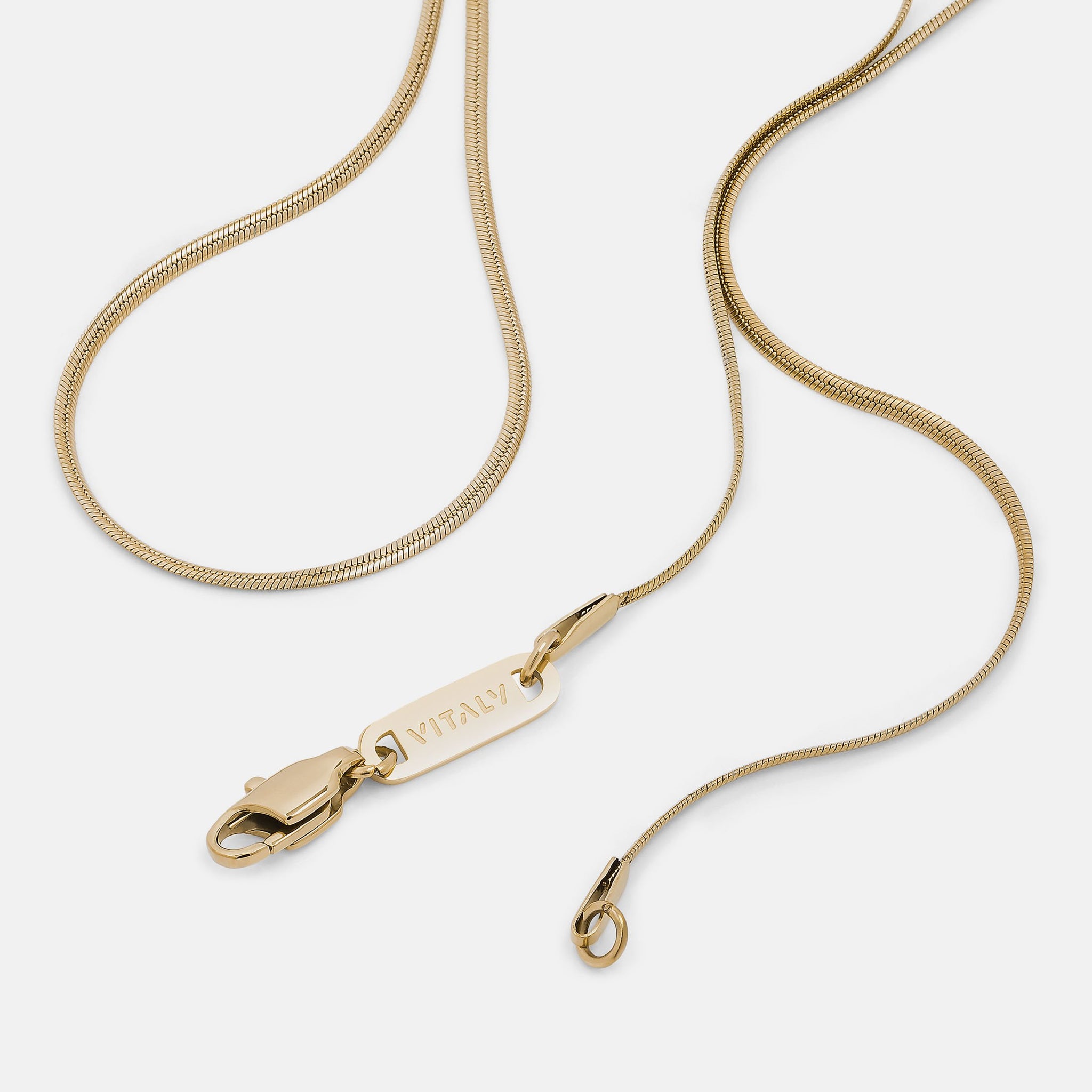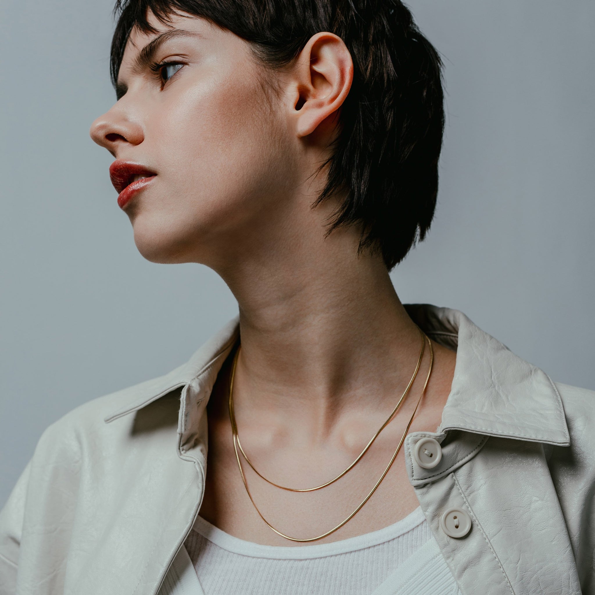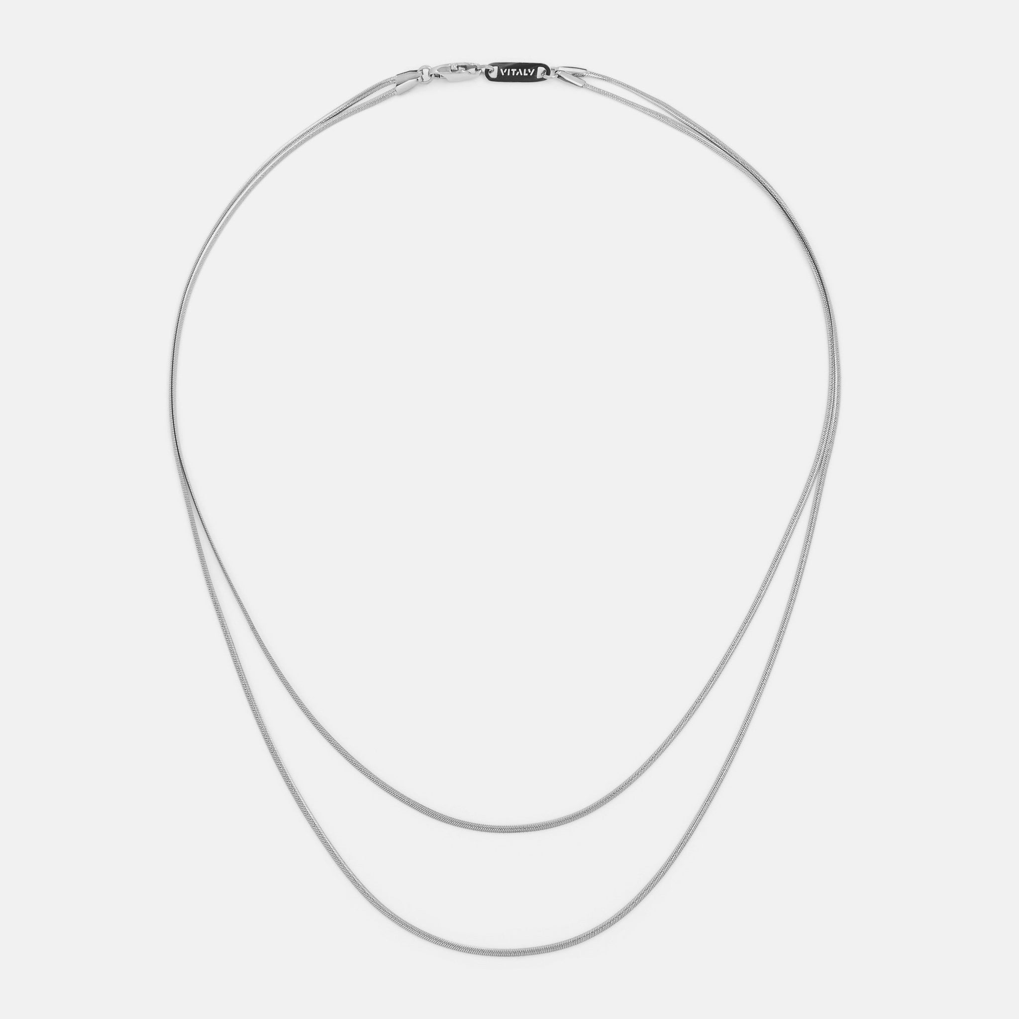 The Silk features two slender snake chains that clasp at the back to keep them hanging in perfect unison.