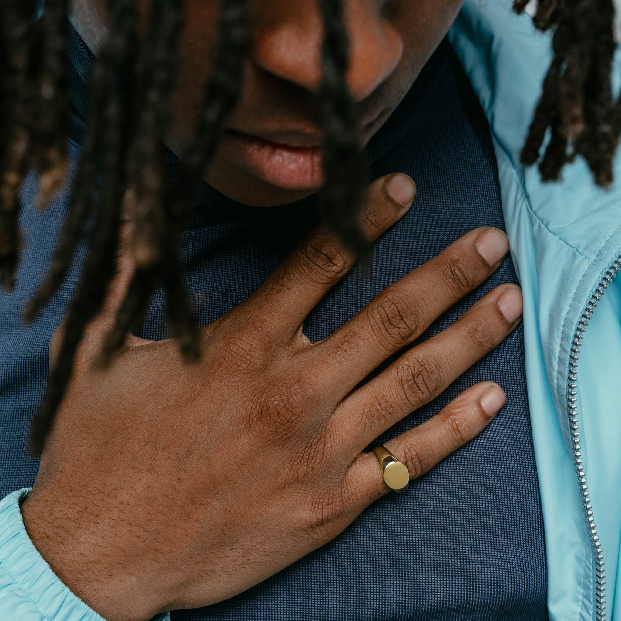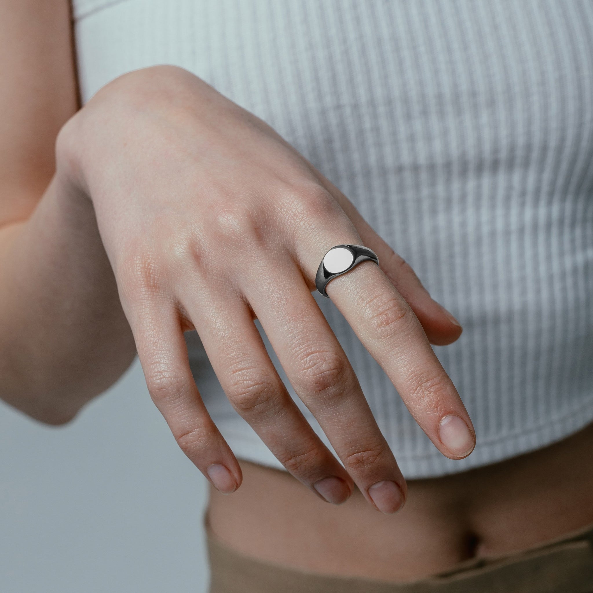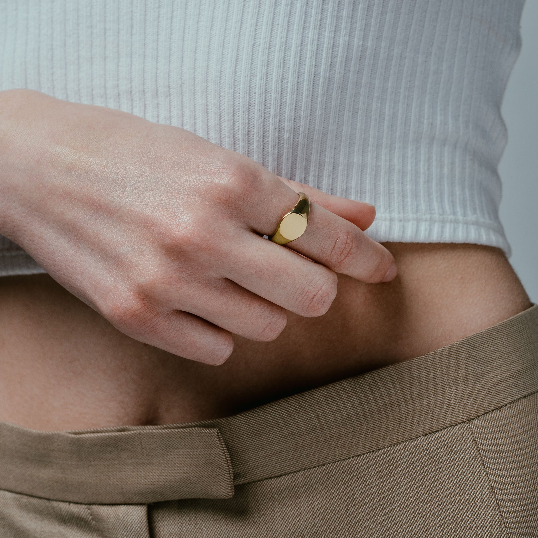 This circular signet is a sleek, low-profile piece designed to go with any outfit, anywhere, anytime.