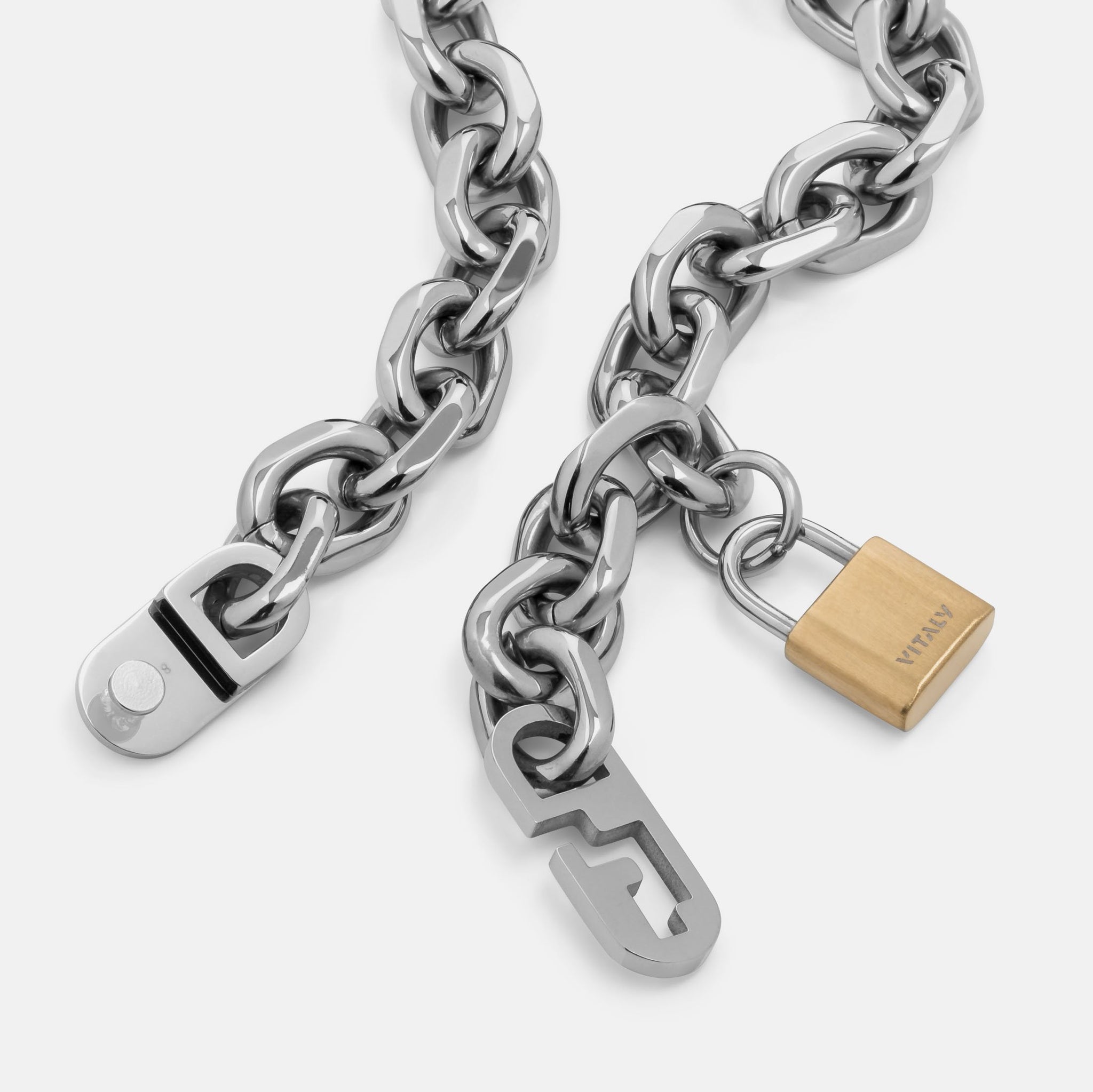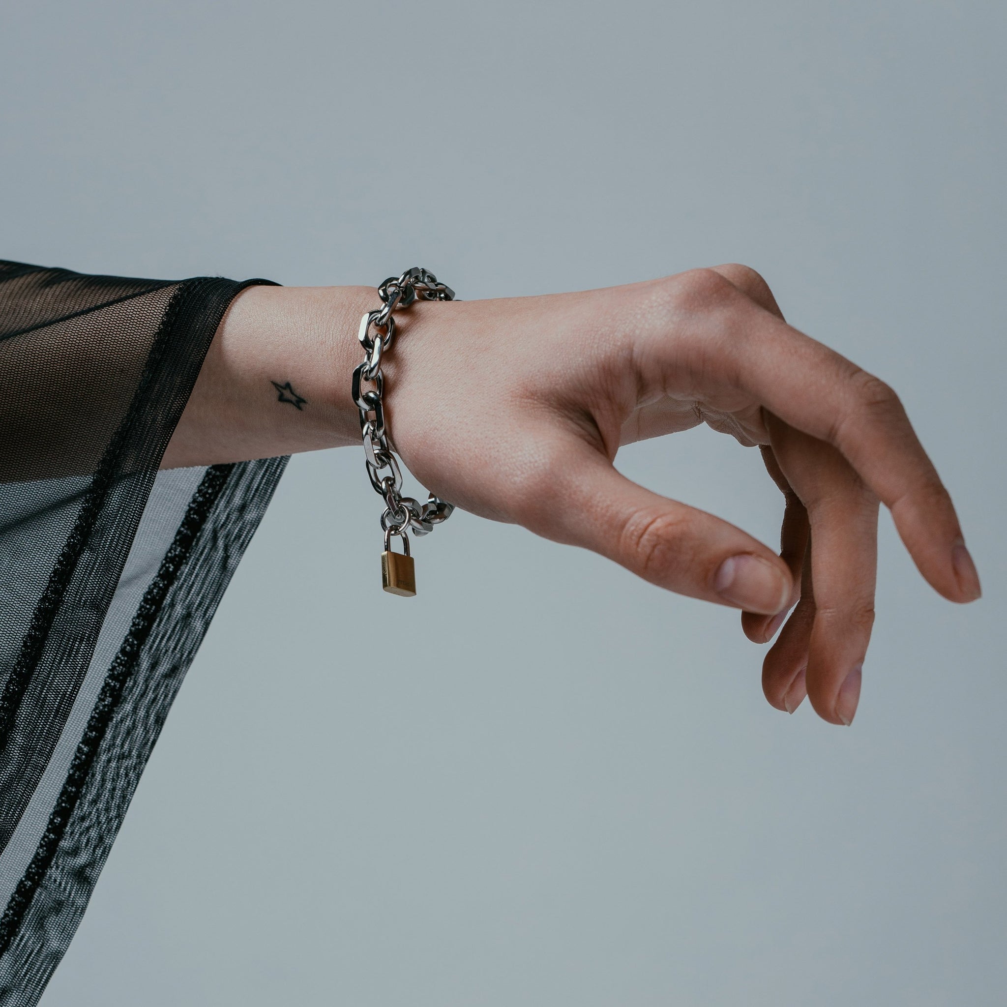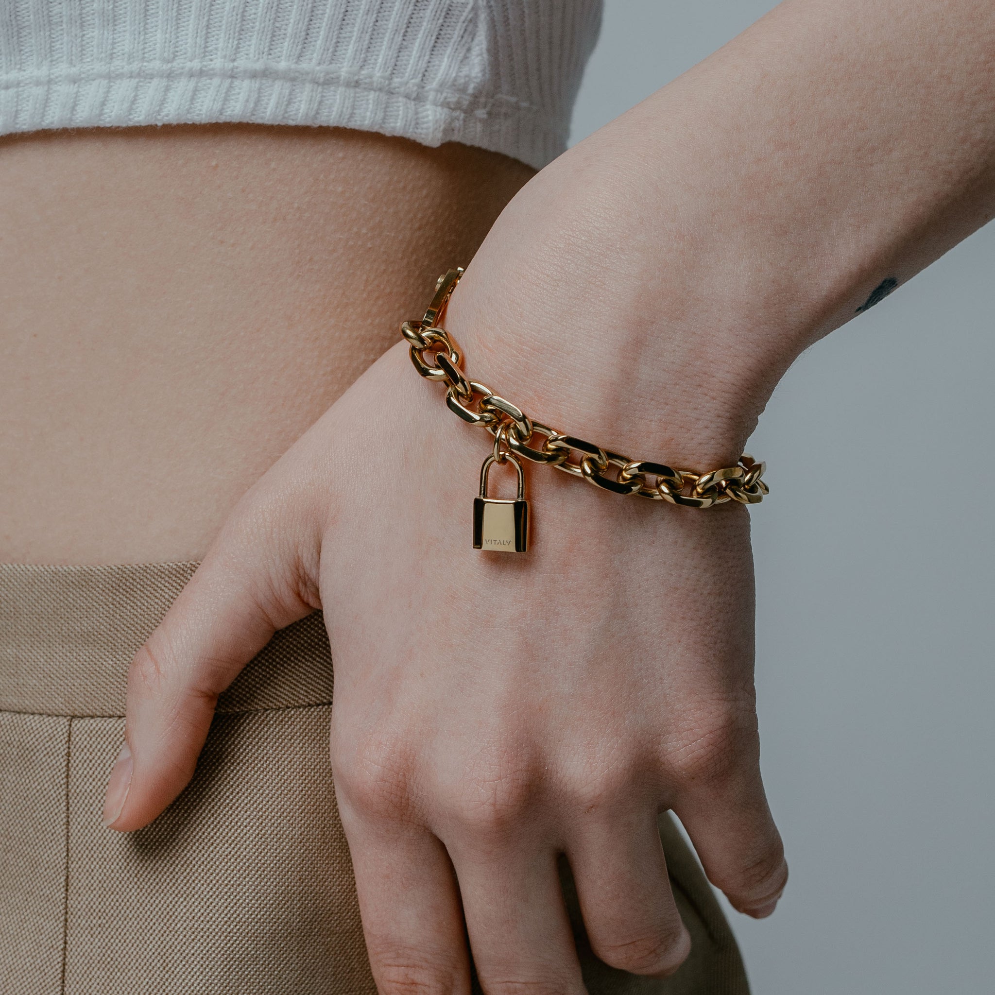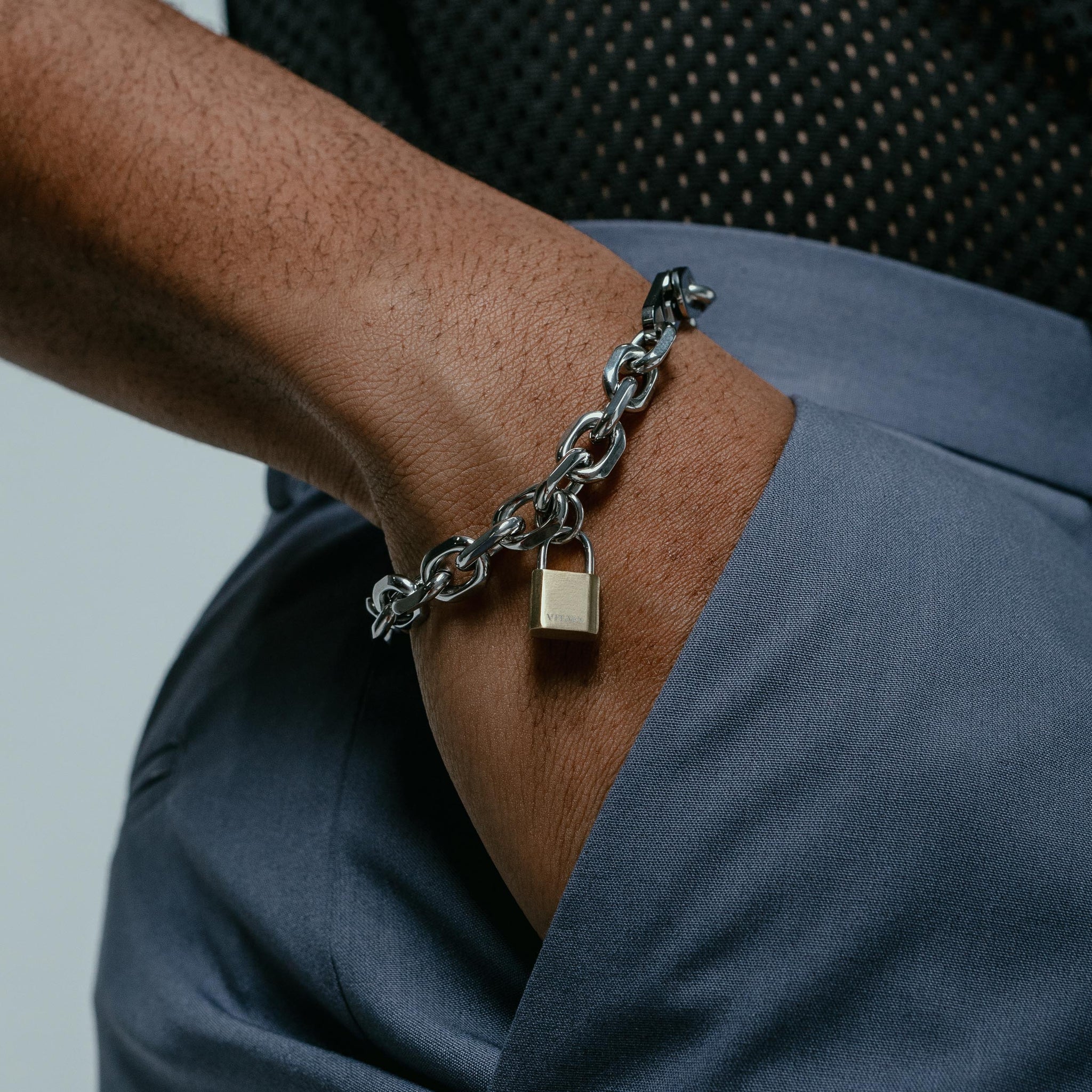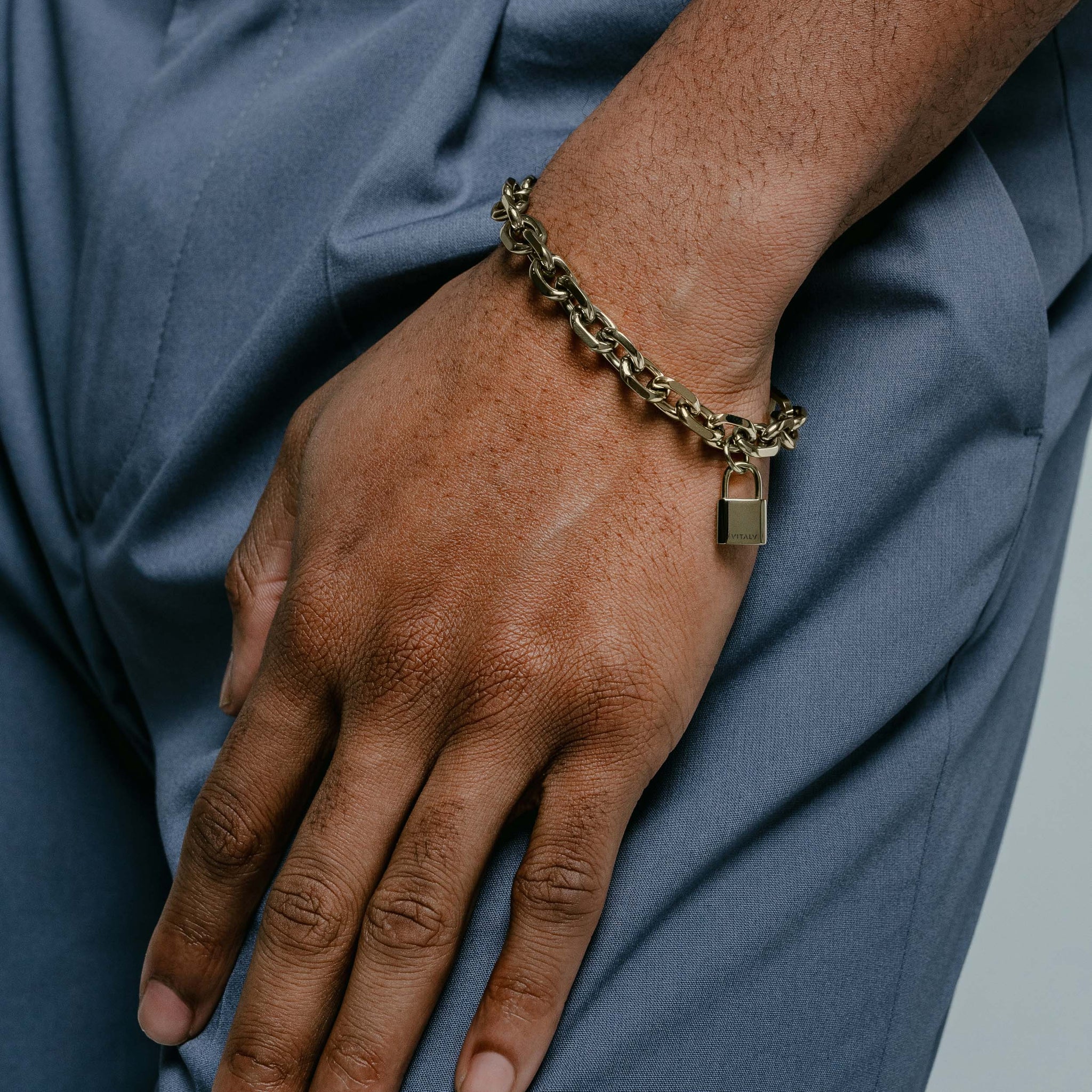 Taking its name from the police radio code for Break & Enter, the Ten-62 features sturdy, squared-off links and is finished with a padlock charm and our signature maze clasp.