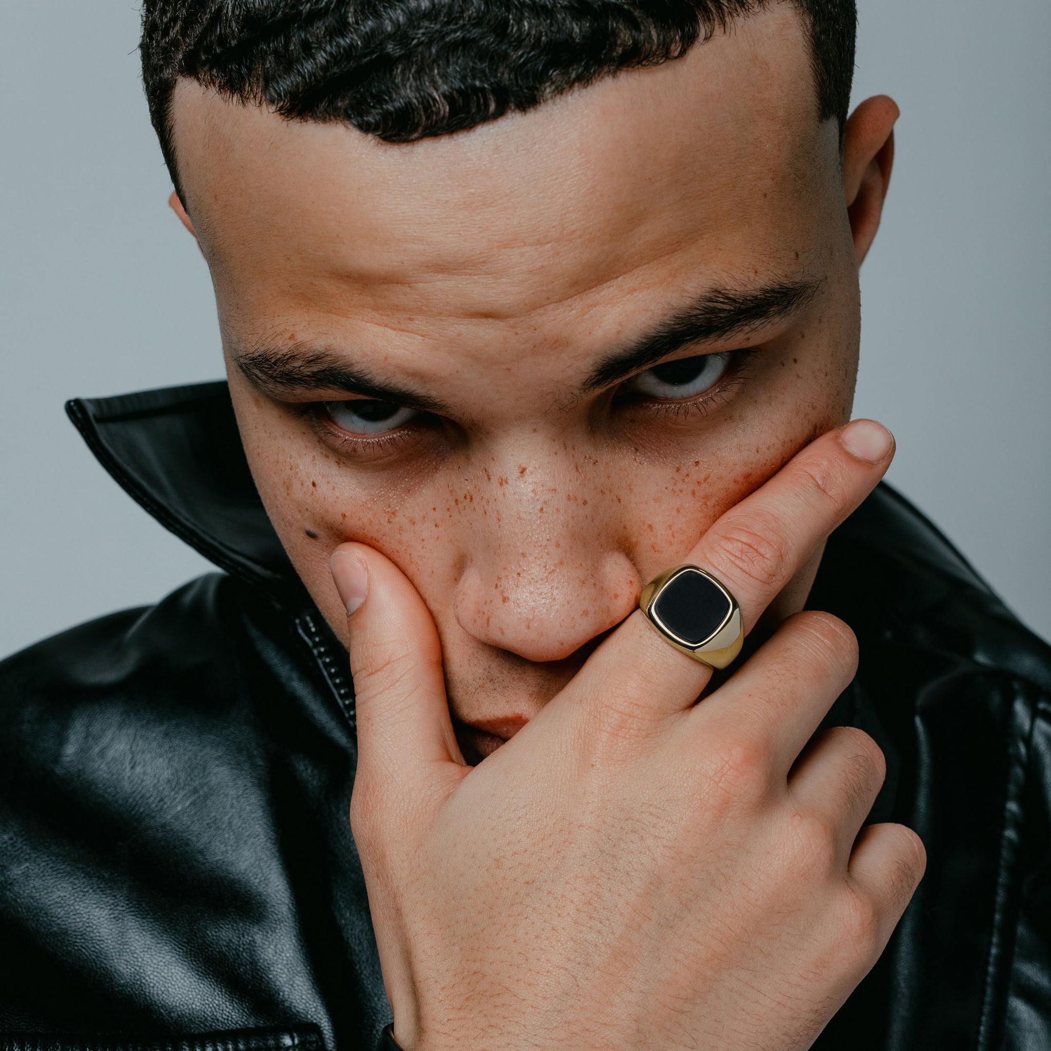 This dignified signet ring takes its name from the Finnish word for “rich.” It’s a fitting title for a piece that is adorned with black onyx — a gemstone that has been popular in jewelry making since the Victorian era. Wear it on your pinky or index finger for a luxuriant effect.