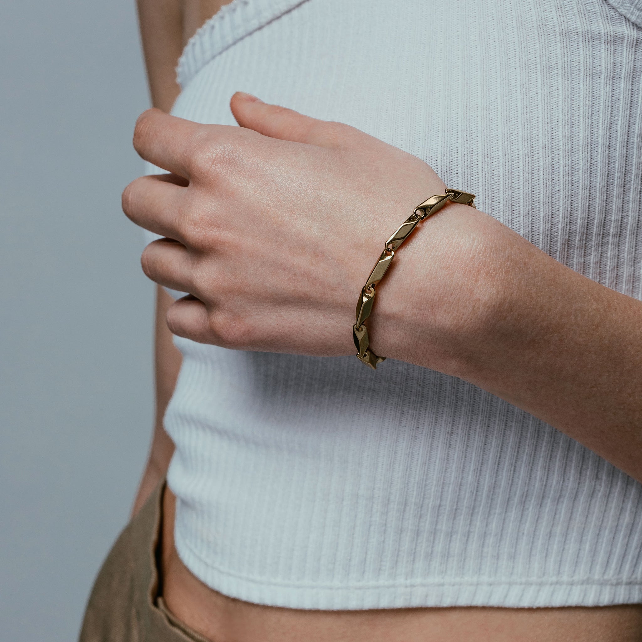 The Zenith is a refined bracelet composed of solid links and sharp angles that lend it a contemporary aesthetic.